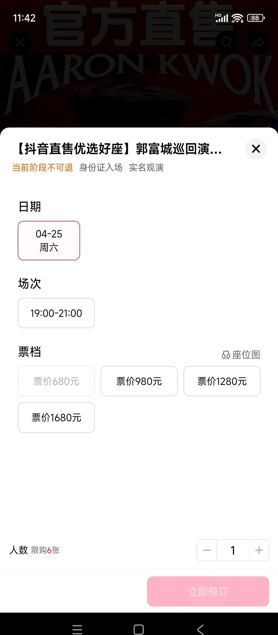 天王郭富城这周就要在合肥开演唱会了。 满打满算才8000个人的场子,结果点开购票