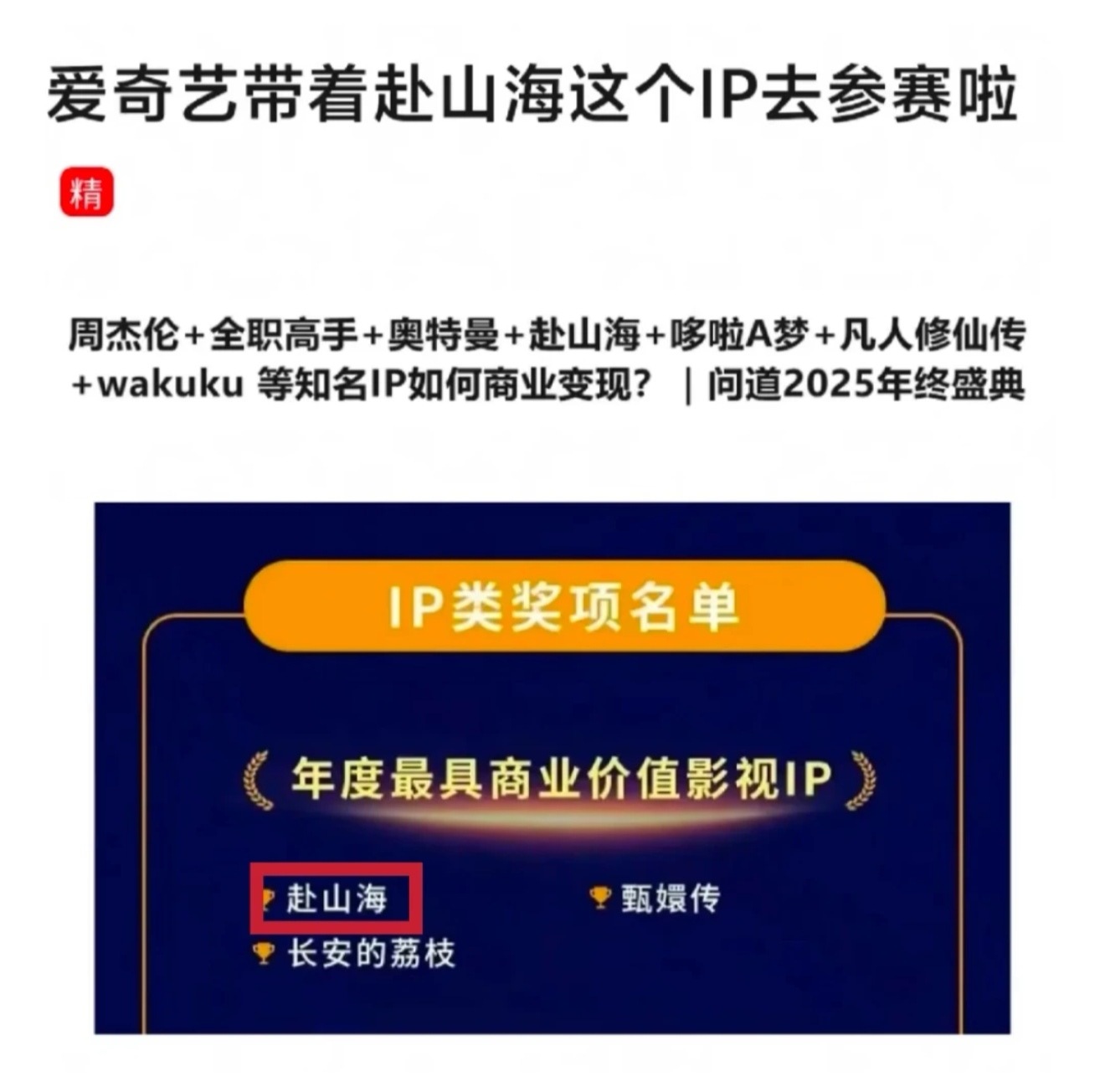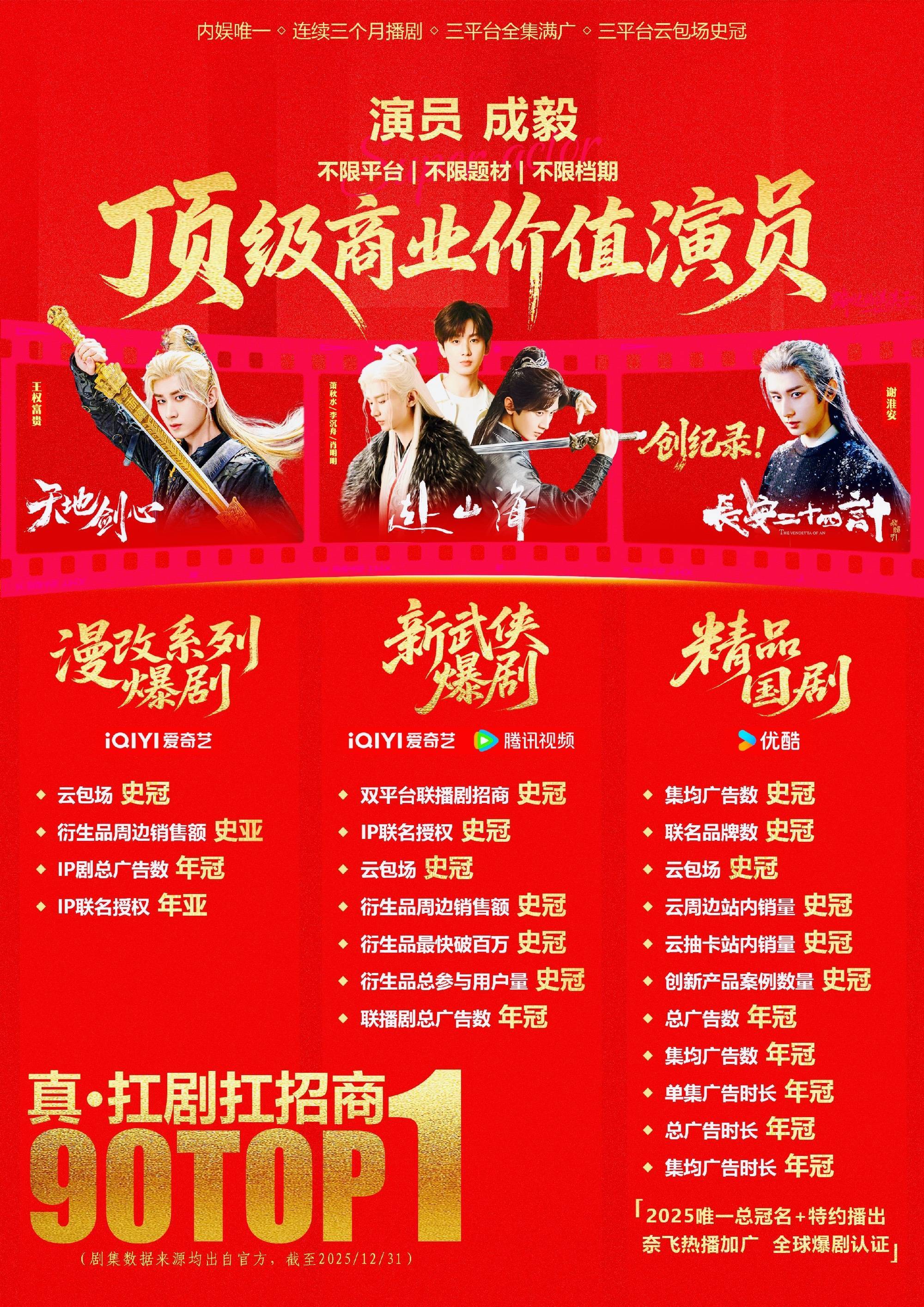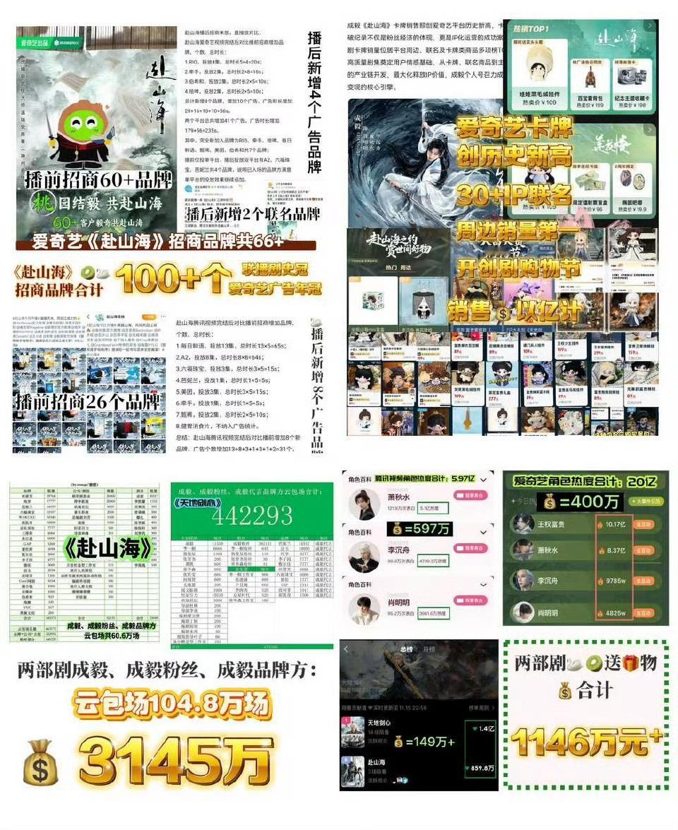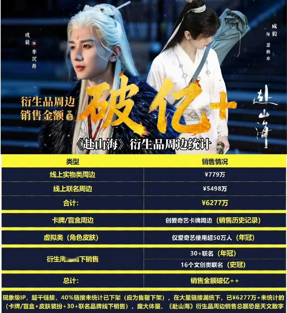 成毅自成IP这句话的含金量还在上升!年度最具商业价值影视IP《赴山海》,其中《赴山海》全系列的总 GMV 累计突破3000万元,公司半年的产品销售额便突破了1亿元大关! 成毅财顶具象化了,爱奇艺真的给成毅磕一个吧。