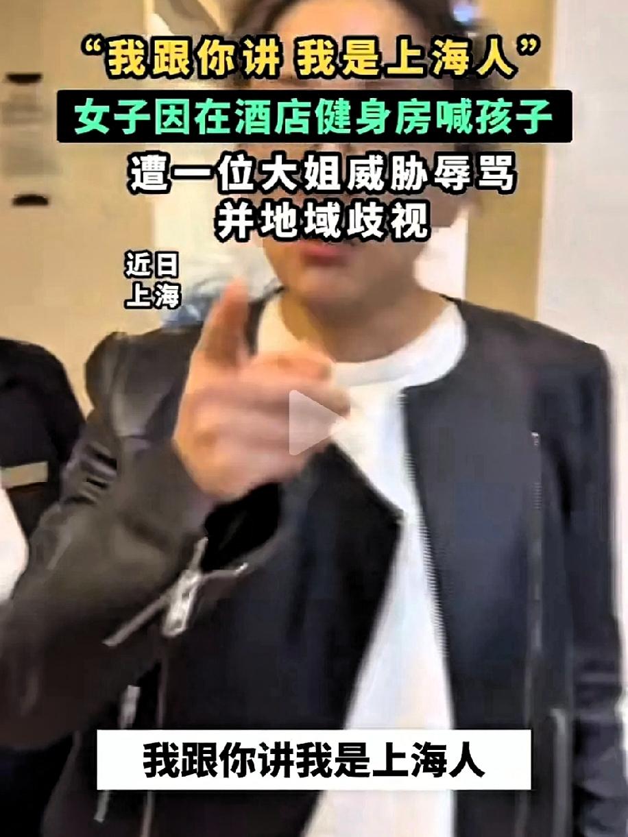 上海,一女子在酒店健身房跑步,怕女儿乱跑,女子喊了三声女儿的名字,不料竟惹到了隔壁的大妈,大妈直接过来关掉了她的跑步机,还当面怼她:我跟你讲我是上海人,我不准你们外地人乱叫!
