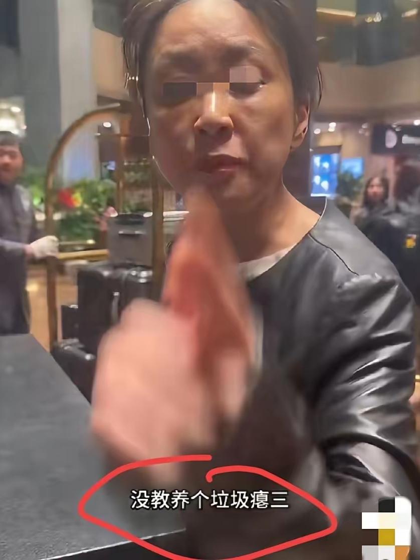 她继续指着那位妈妈骂,脏话都出来了,还给人扣上“小三”之类的帽子,追着人家不放,酒店的工作人员在旁边都看傻了,接投诉的时候就说了一句“真是莫名其妙”。