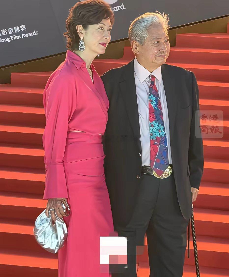 洪金宝携夫人高丽虹现身活动时的一幕,高丽虹是他的第二任妻子也是他的女徒弟。