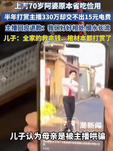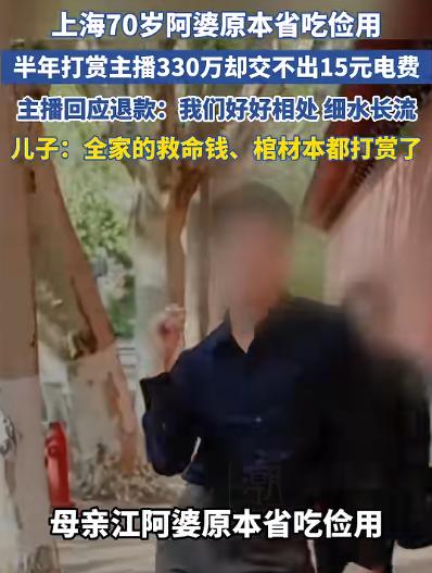 “害人不浅!”上海,一男子援边回家,发现70多岁的母亲连十几块钱的电费都交不起了。男子懵了,随后一查,竟然发现节俭了一辈子的母亲,却在半年前接触网络直播后像着了魔一样,短短半年的时间里,打赏给2名30多岁的男主播高达330余万元。这些钱不仅包括母亲的养老金,还包括他多年积攒的、交给母亲保管的工资、奖金。