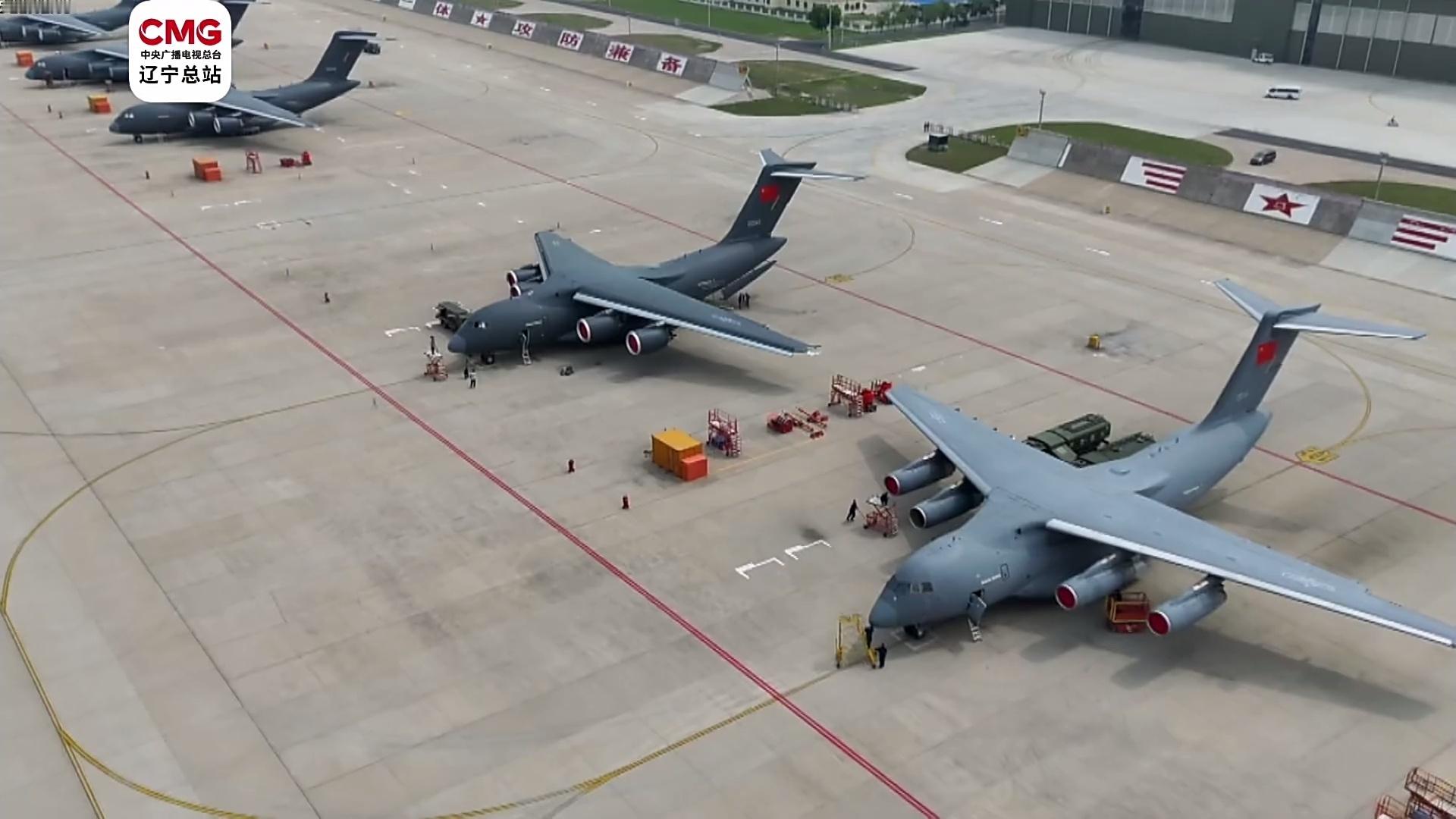 空军运20B接烈士回家运20B和运20A同框俯视图