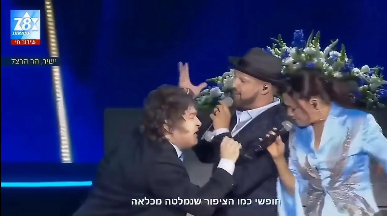 阿根廷总统米莱在以色列很卖力的演唱,庆祝以色列独立。作为一个国家领导人,这种举动明显有辱国格。