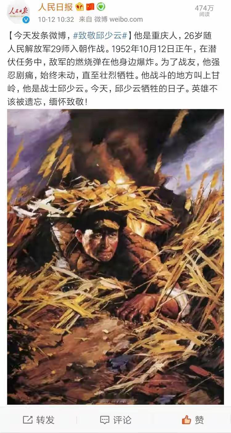 烽烟滚滚唱英雄,中国英雄回家迎。壮丽山河美如画,烈士功勋记胸中。[送自己一朵花][送自己一朵花][送自己一朵花][玫瑰][玫瑰][玫瑰]