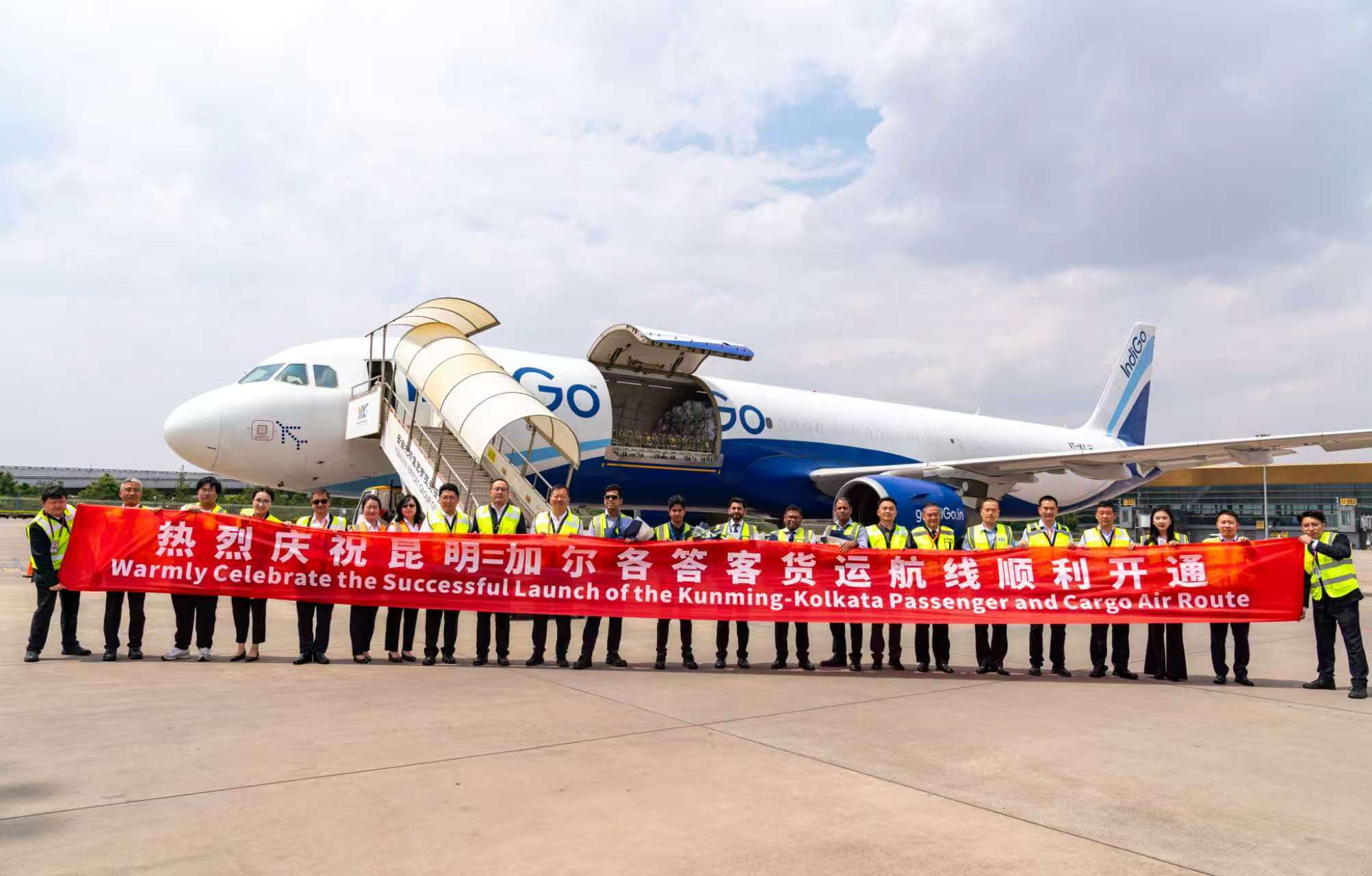 通行线·航空【印度靛蓝航空成功开通昆明=加尔各答货运航线】4月20日,印度靛蓝航空(IndiGo)成功开通加尔各答=昆明定期全货机航线,首航仪式在昆明长水国际机场隆重举行。该货运航线采用A321F全货机执飞,每周执飞三班。首航当日,进港货物为来自印度的优质螃蟹,共计9吨;出港货物为普通货物,约21.4吨。