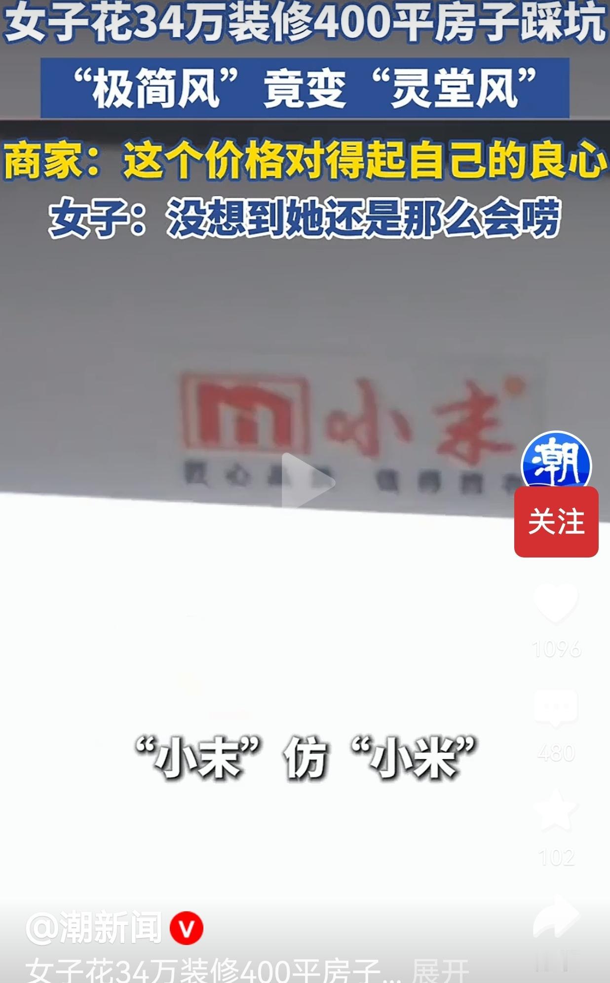 花34万装400平的房子,谁能想到,好好的极简风,愣是被装成了“灵堂风”,连家电都是仿冒的“小末”“西门庆”,这装修公司的良心,真的是大大的坏了。
