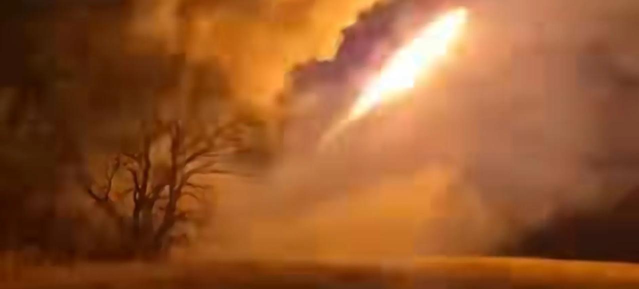 俄军东部集群多管火箭炮部队在扎波罗热州向乌军预备队的集结地进行齐射。从无人机拍摄