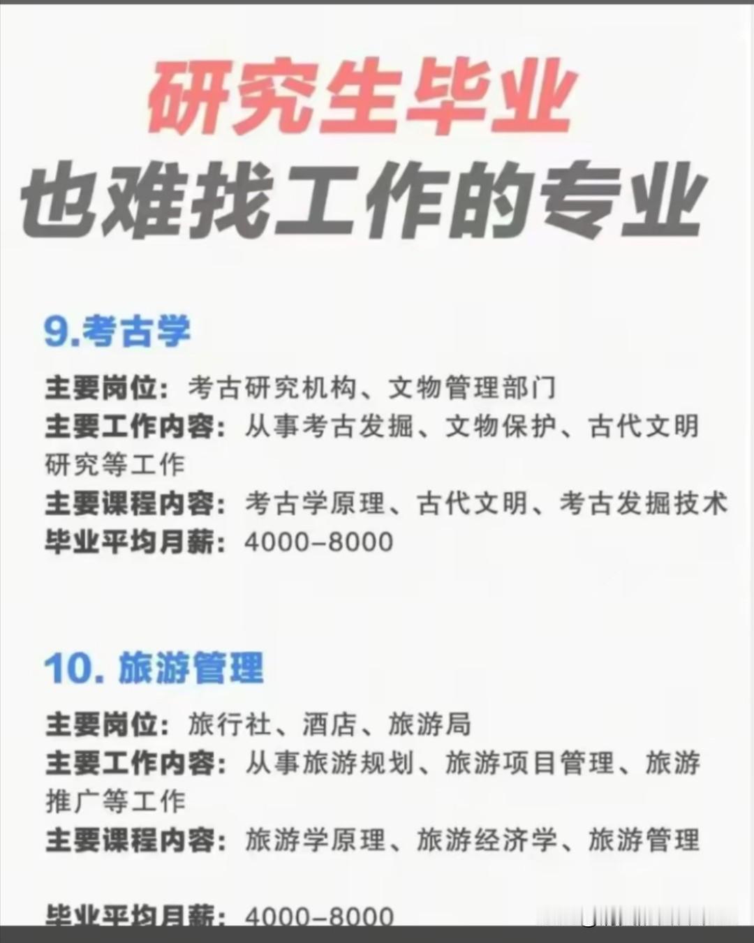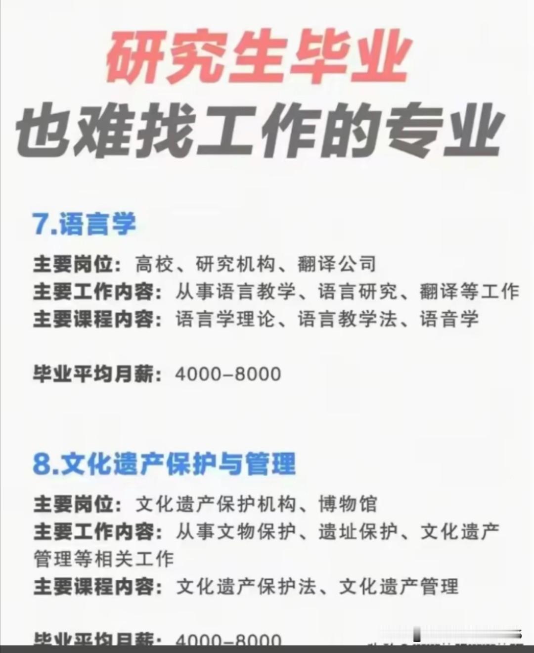 第1个就是历史学,研究生读历史就业面真的很窄,除了进入博物馆、档案馆去做行政,几乎没有对口的岗位,考公的岗位也特别的少。竞争压力比普通岗位甚至高十倍有很多的学生最后只能被迫转行。