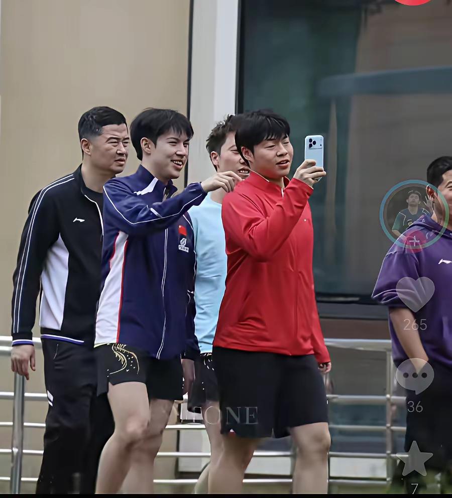 大壮今天和对岸树上的球迷互拍,成了国乒男队的开心一刻![大笑][捂脸]