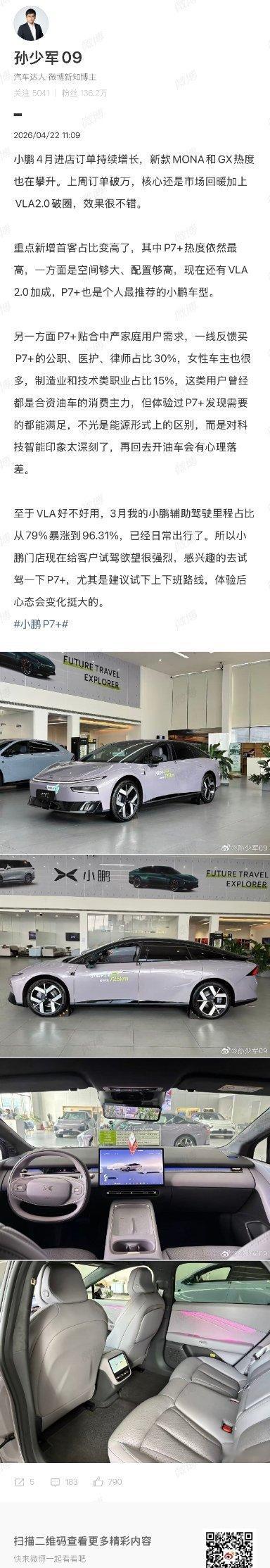 国产新能源崛起下的购车变化高知人群都在开小鹏P7+成都新能源渗透率已超50%,20万级新能源车成中产家庭首选,安全与智驾是大家最看重的点。公务员、教师、医生、律师、媒体这五大高知群体占比超60%,过半人坚定选20万级国产新能源。小鹏P7+凭借宽敞空间、舒适驾乘、全维智驾与硬核安全,深受体制内、金融、科研等高知人群喜爱,他们乐于尝鲜、认可智能驾驶,开智能新能源车已成新潮生活方式。