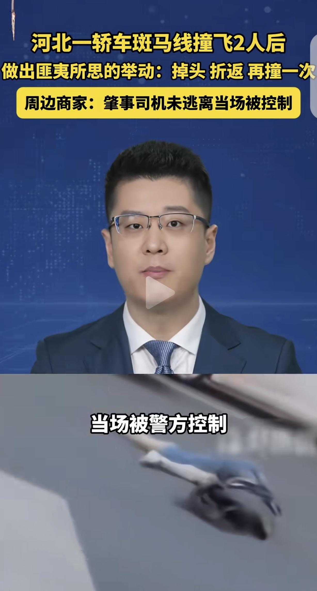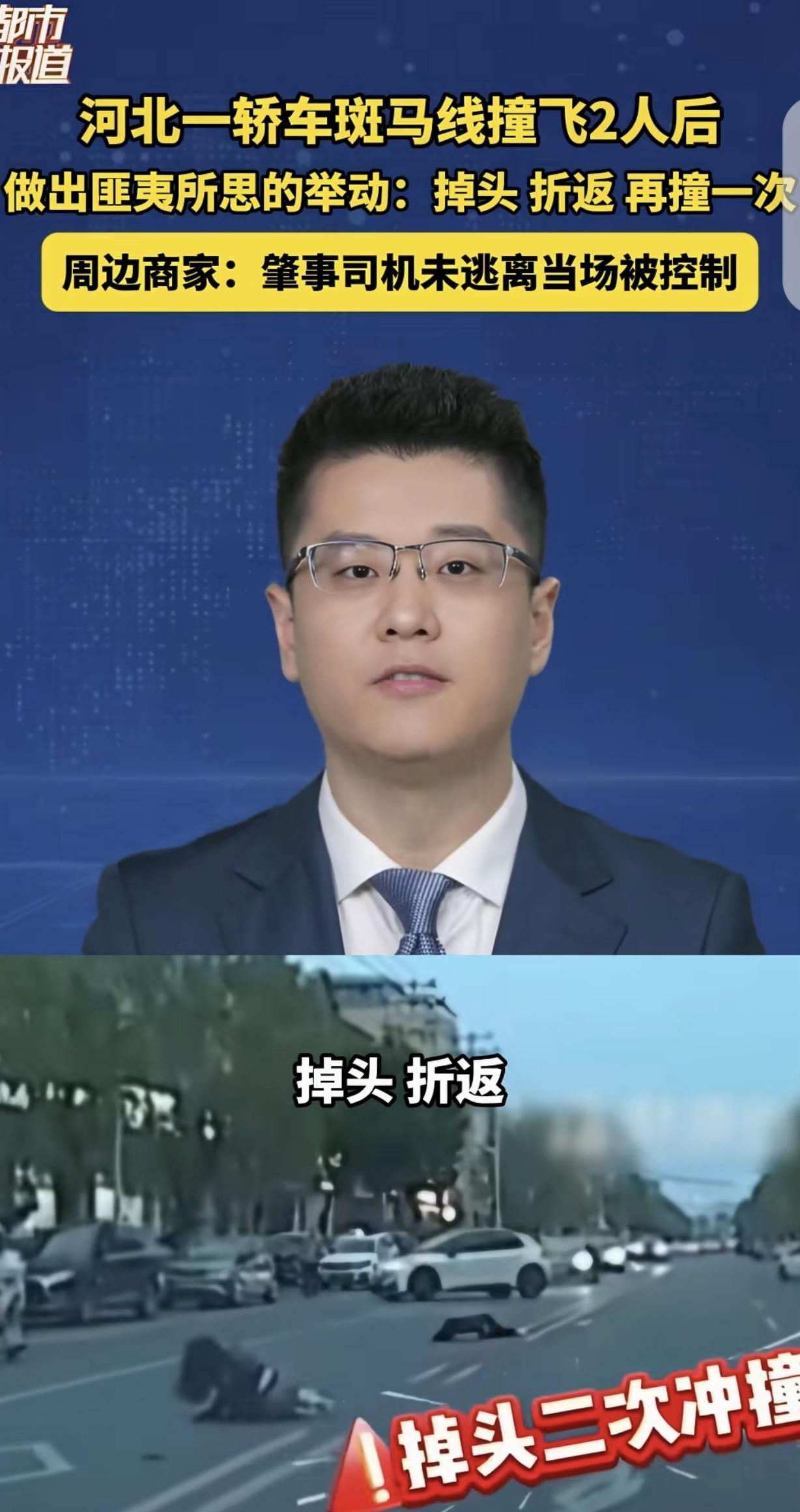 “匪夷所思!”河北涿州,一白色轿车,在斑马线撞飞一对男女后,又做出让人目瞪口呆的举动,轿车竟掉头折返,对着挣扎着刚要起身的女子,一踩油门又撞了一次,女子发现对方的疯狂举动,想躲已经来不及。肇事司机没逃跑,被当场控制。网友:司机应该是女士,这大概是有预谋的情杀。