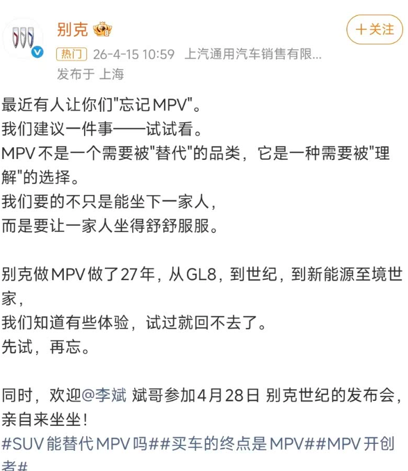 李斌说忘记MPV,别克不服被大V贴脸开大!
