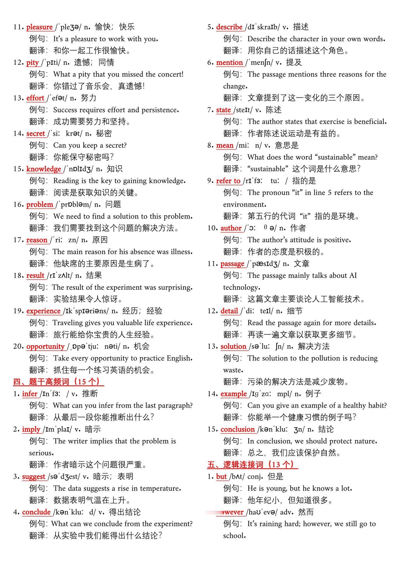 中考英语阅读理解高频词汇➕例句总结!学好英语最简单高效的方法不是背单词而是背句子