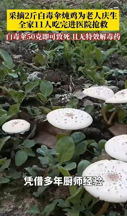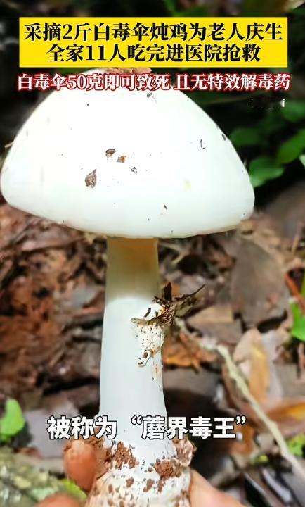 (信息来源:第一眼新闻《中毒病死率高达80%!一家人为庆祝老人生辰,采摘2斤白毒伞炖鸡,全家11人吃完后进医院抢救!据悉,白毒伞又叫鹅膏菌,被称为“蘑界毒王”,毒素毒力强,50克即可致死,且无特效解毒药。》)