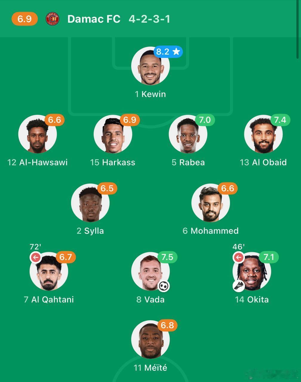 4月24日 02:00 沙特联 达马克vs阿科多上轮达马克1:1胡拜尔库迪西亚,达马克守门员全场蕞佳。(达马克上轮运气好👍)