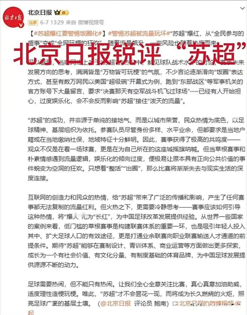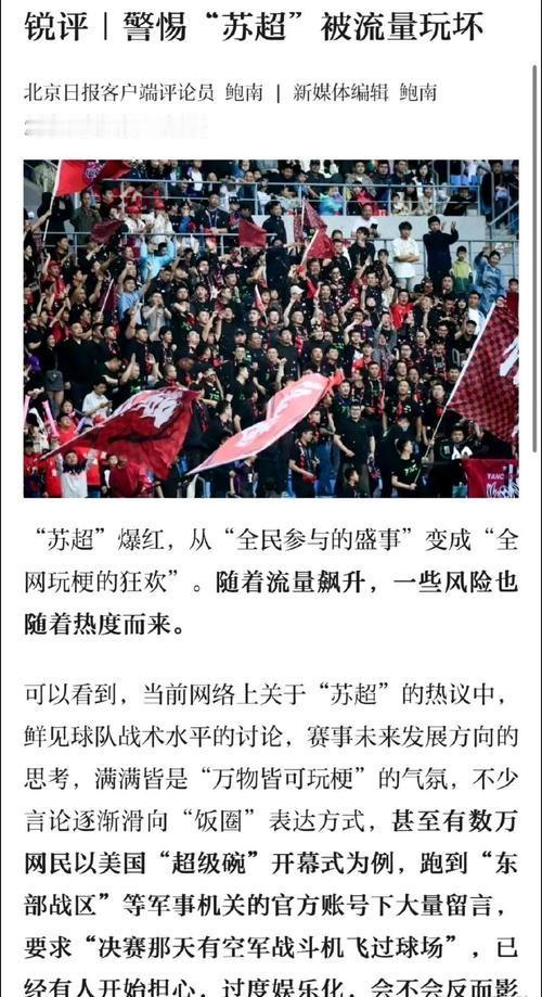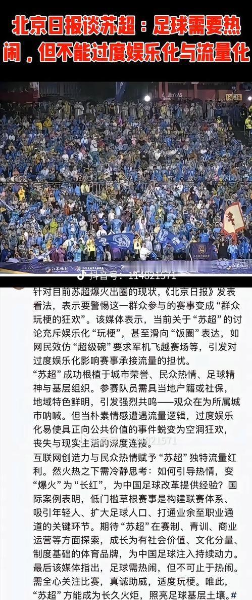 你如何看待?《北京日报》批评苏超联赛——过度娱乐化和流量化,没有中国足球精神