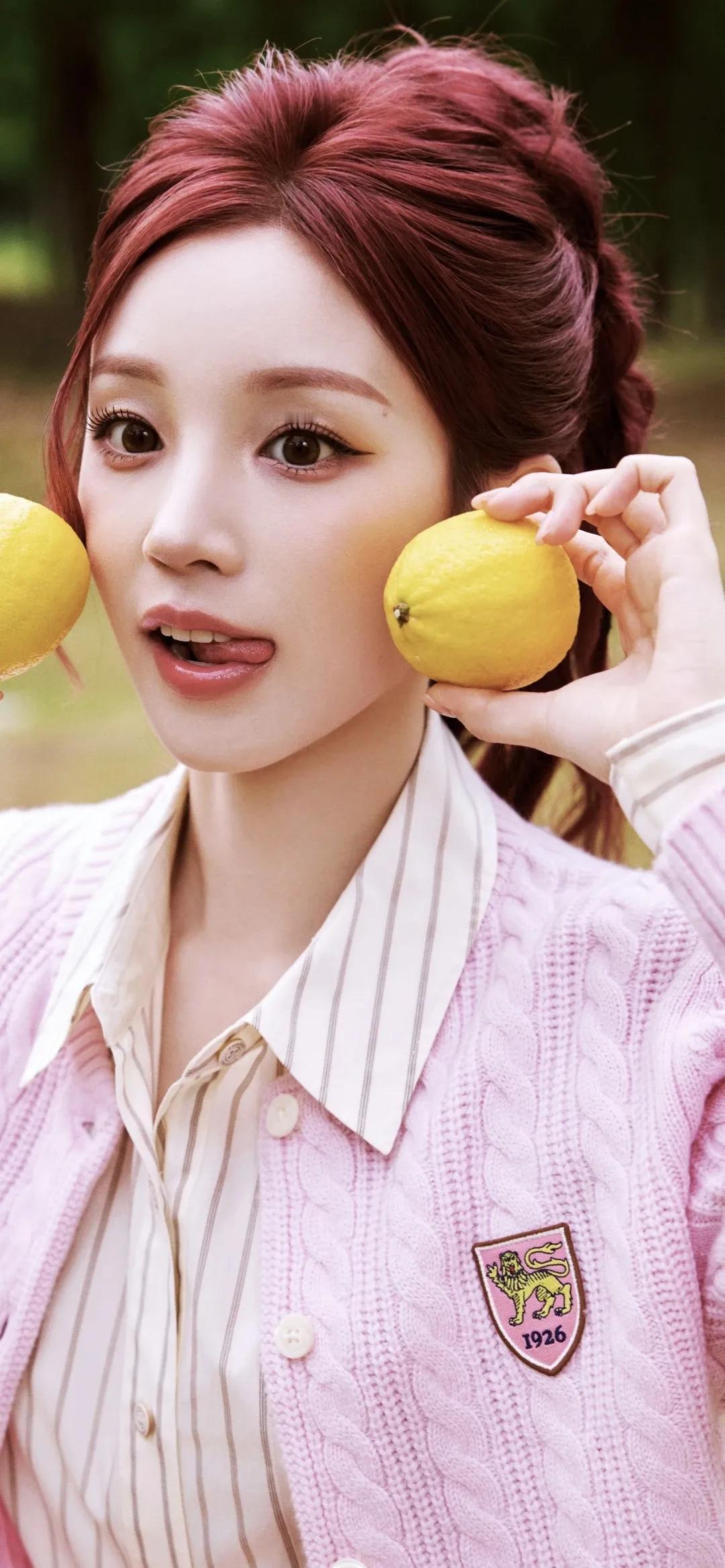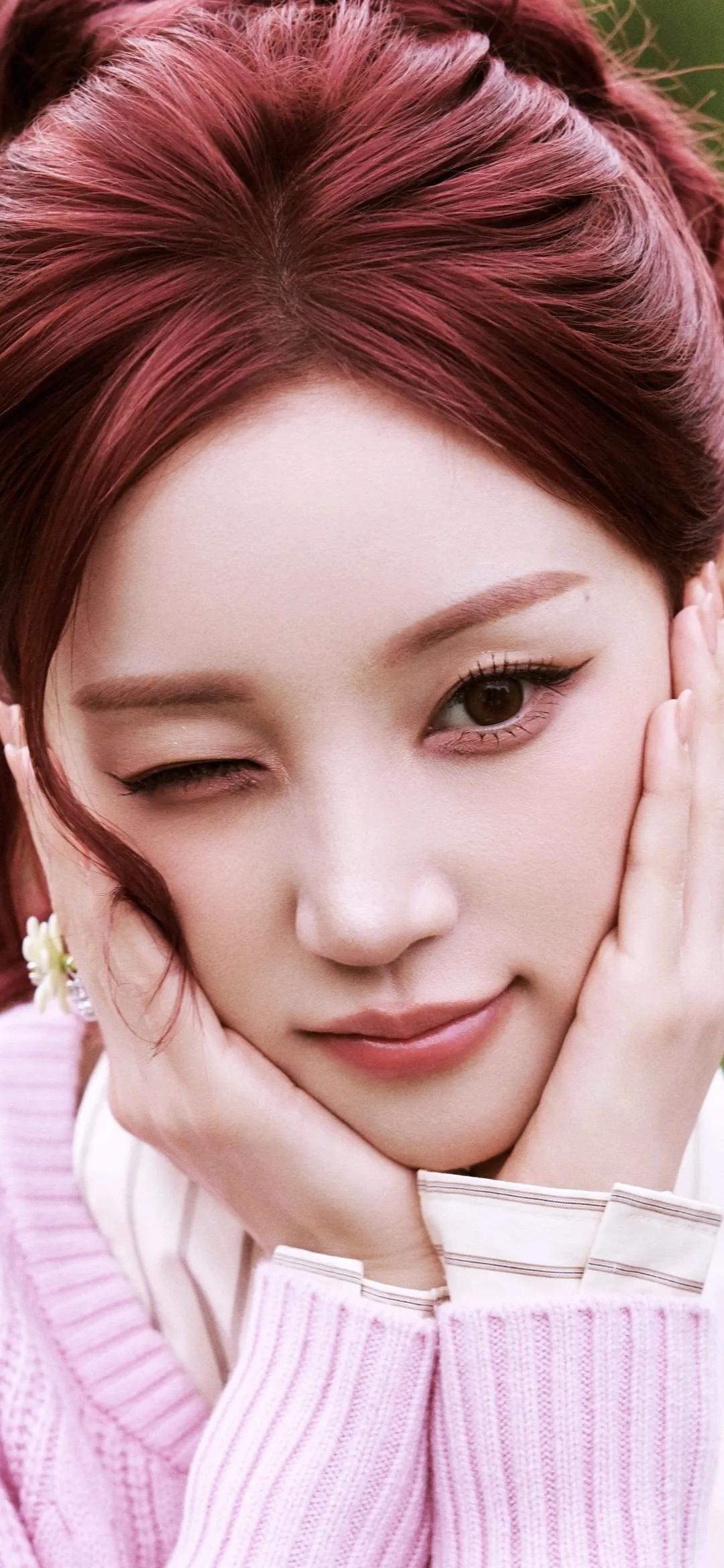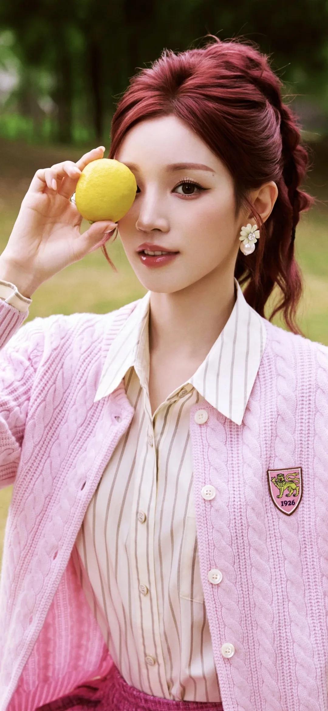 美女壁纸~宋雨琦,红棕高马尾搭配一身粉调穿搭,像闯进了春日的甜系童话。针织开衫的