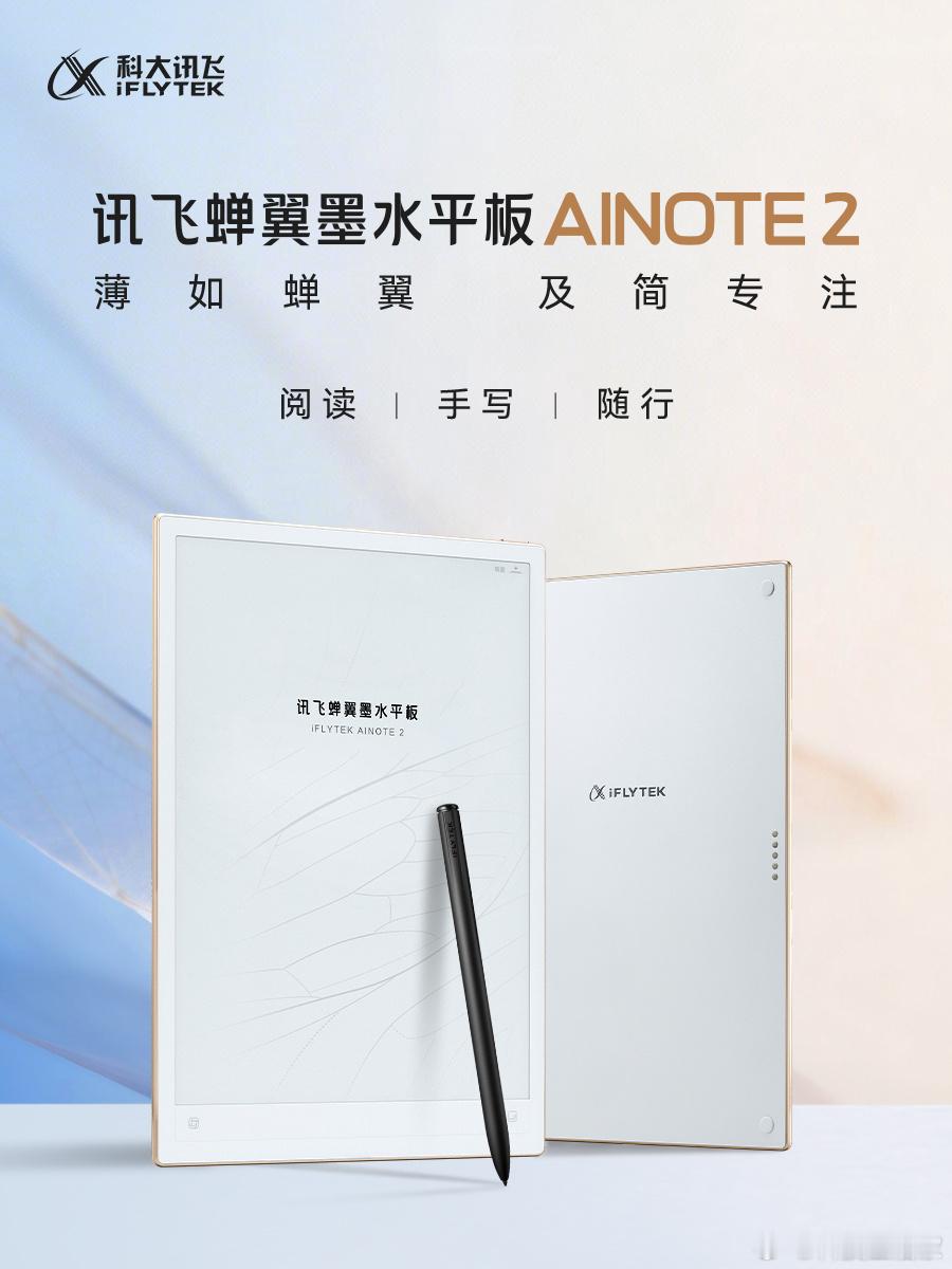 科大讯飞又在墨水平板领域推出重磅力作,讯飞蝉翼墨水平板AINOTE2凭其仅为4.2mm的机身厚度获得了吉尼斯世界纪录™认证,被授予“全球最薄的墨水平板”称号。产品机身由全合金一体化材料与高强镁玻纤背板打造,实现了295g的轻盈重量的同时确保了机身结构的坚固耐用,将产品的便携性与工程学设计提升到了新的高度。