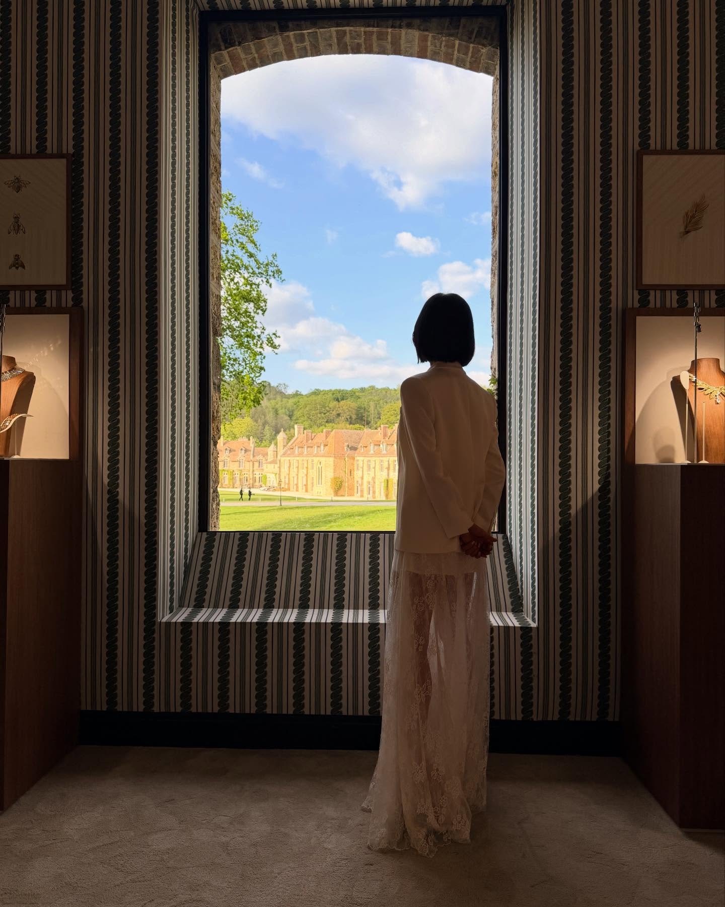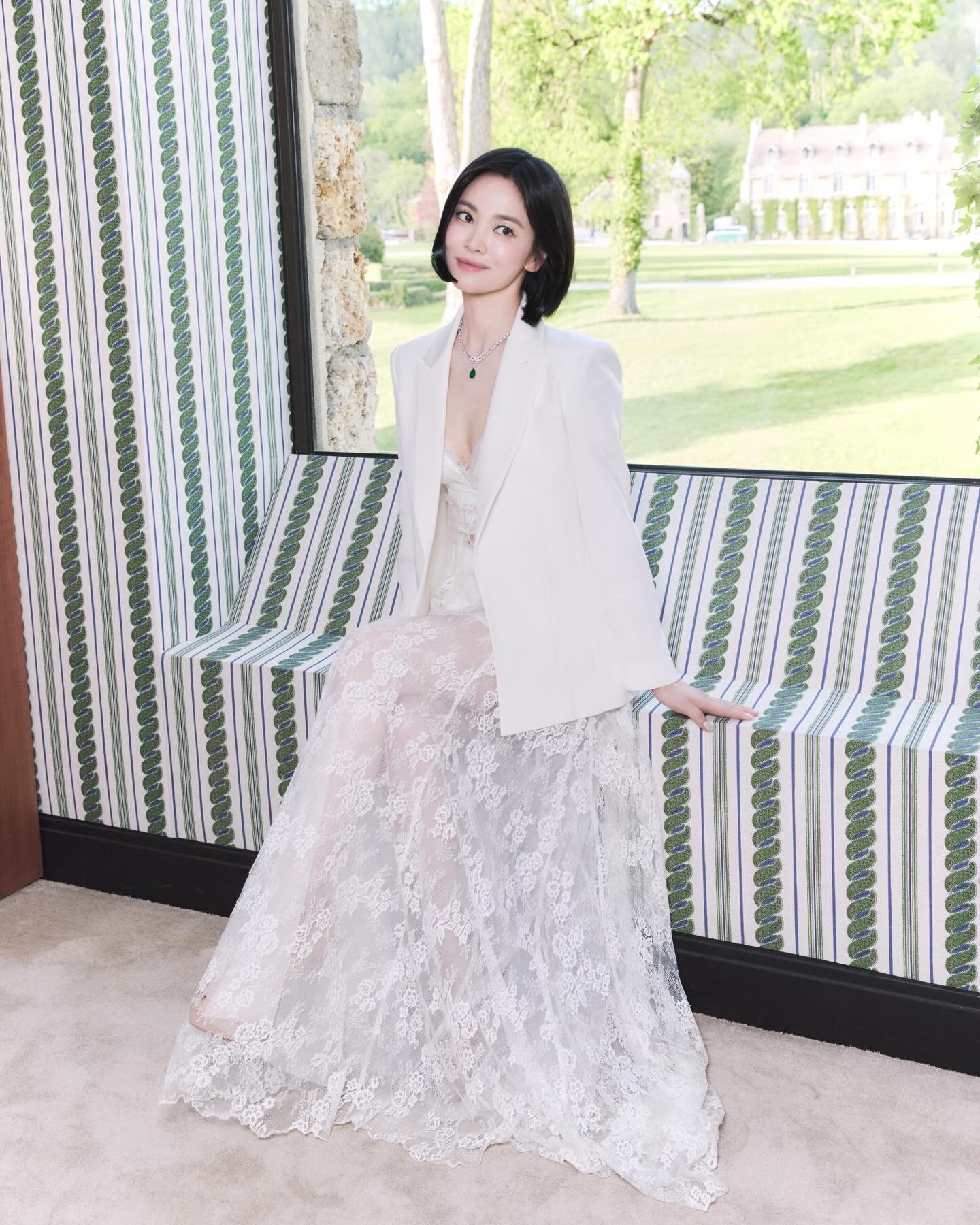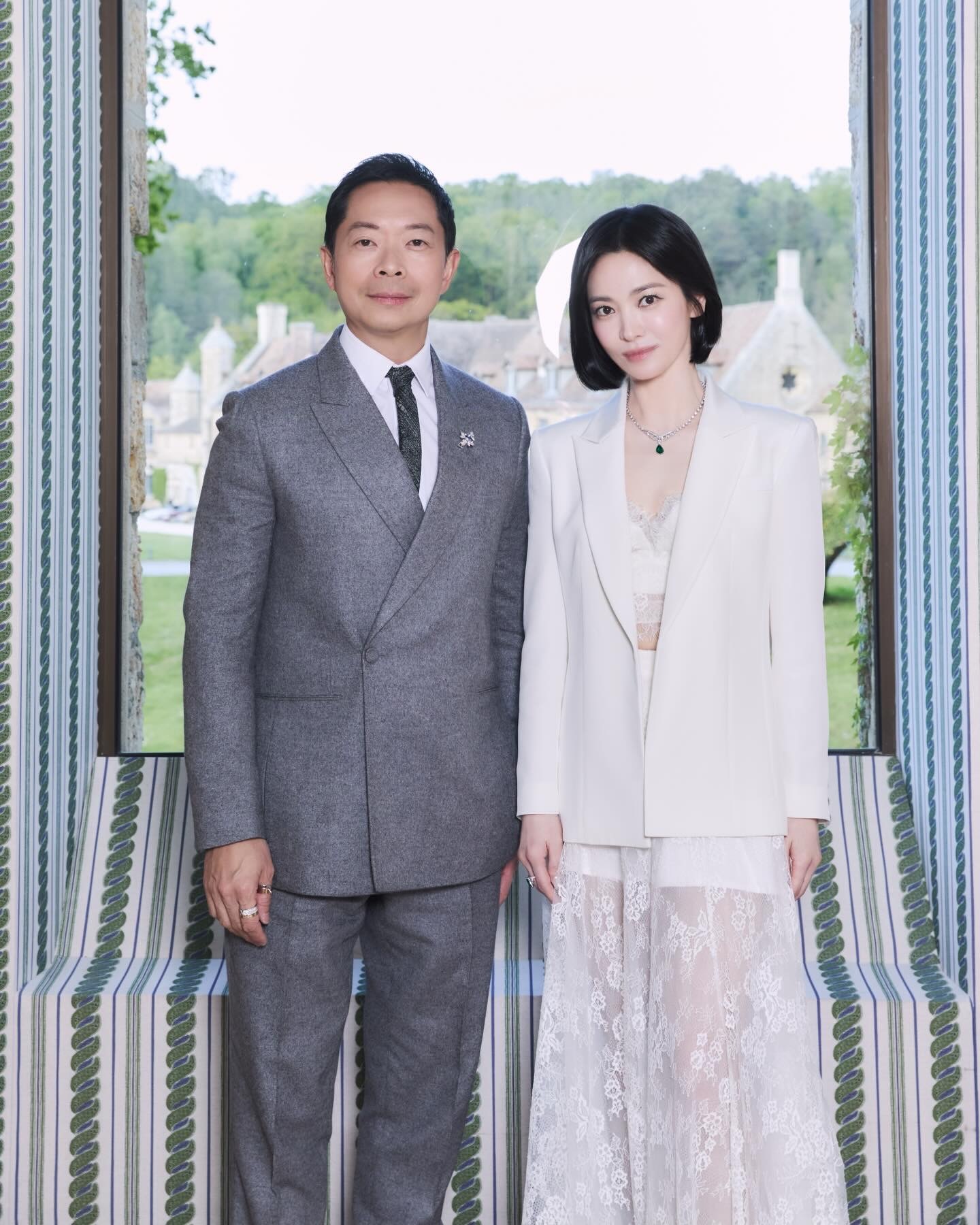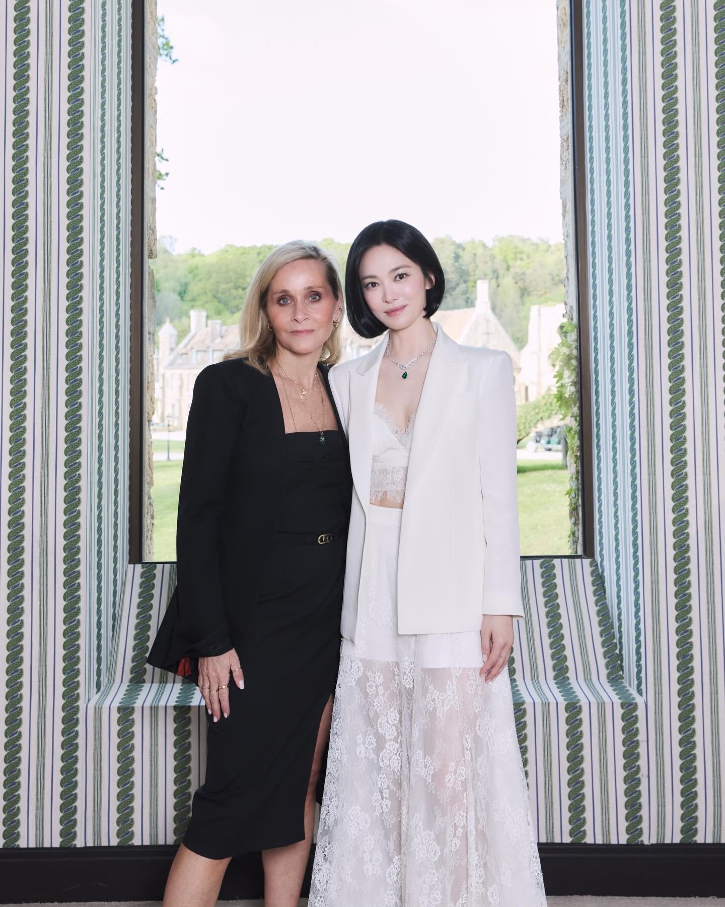 宋慧乔乔妹在巴黎和珠宝的高层一起整个人也是很低调了就是珠宝不低调