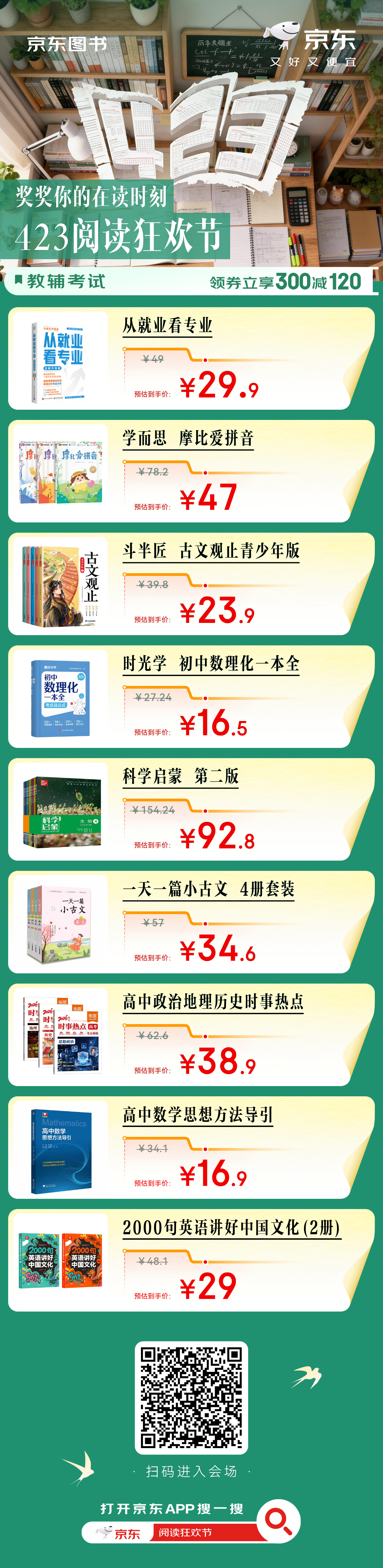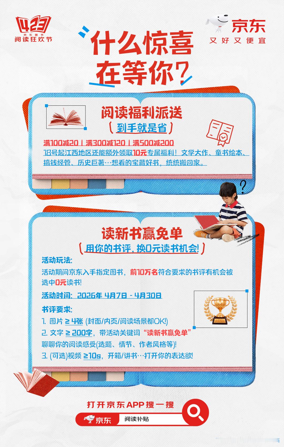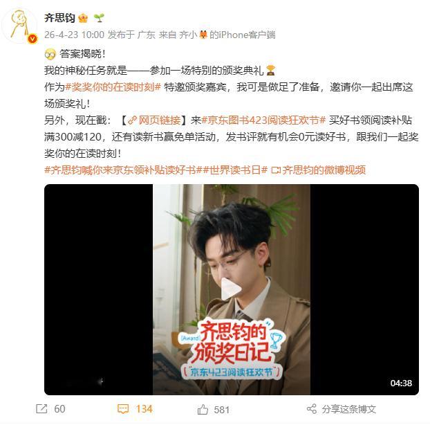 刚看完齐思钧的颁奖vlog,真的被这波“随机掉落”的惊喜暖到了!看到他给路人读者送出的奖品里那些精挑细选的好书,有《骑鹅旅行记》、《学习力跃迁》等等,我这读书魂也按捺不住了。小齐说阅读不应有压力,这话太戳我。我也打算去京东423会场get小齐的好书了。正好赶上京东图书423阅读狂欢节,上京东领阅读补贴满300减120,读新书赢免单。大家快戳【网页链接】跟我一起选书,奖励自己的在读时刻吧!齐思钧喊你来京东领补贴读好书 奖奖你的在读时刻 京东图书423阅读狂欢节 京东图书 世界读书日 全民阅读