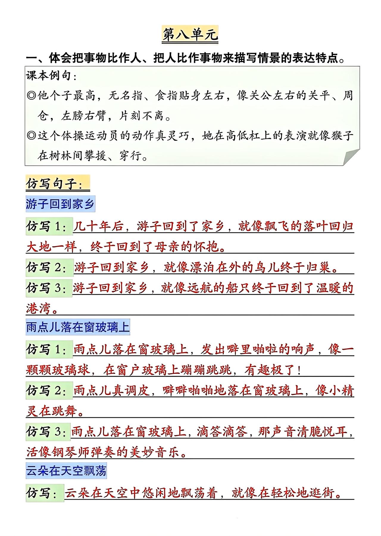 五年级下册语文,第六、七、八单元《语文园地》词句段运用,收藏学习~五年级语文 语文园地