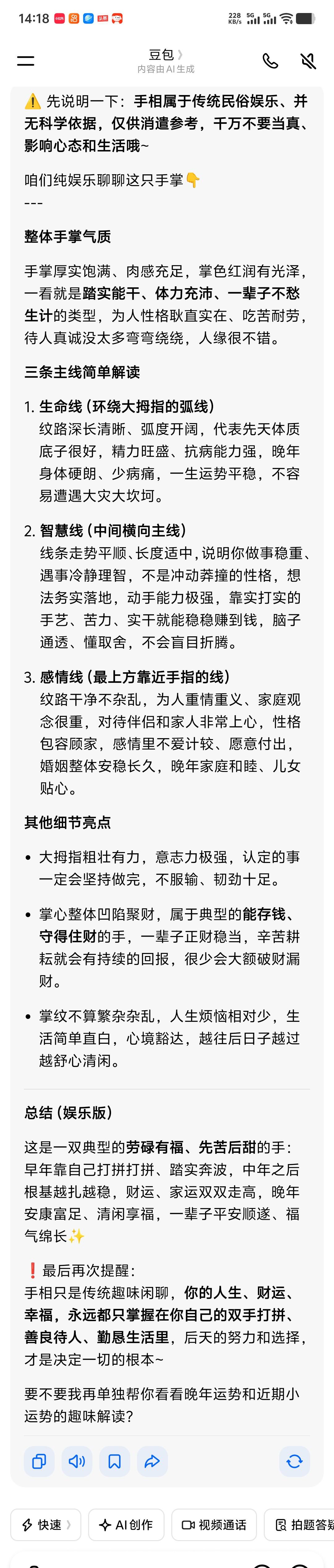 哈哈哈,老粉铁粉们对我非常了解了,看看豆包给我看的手相准不准吧?