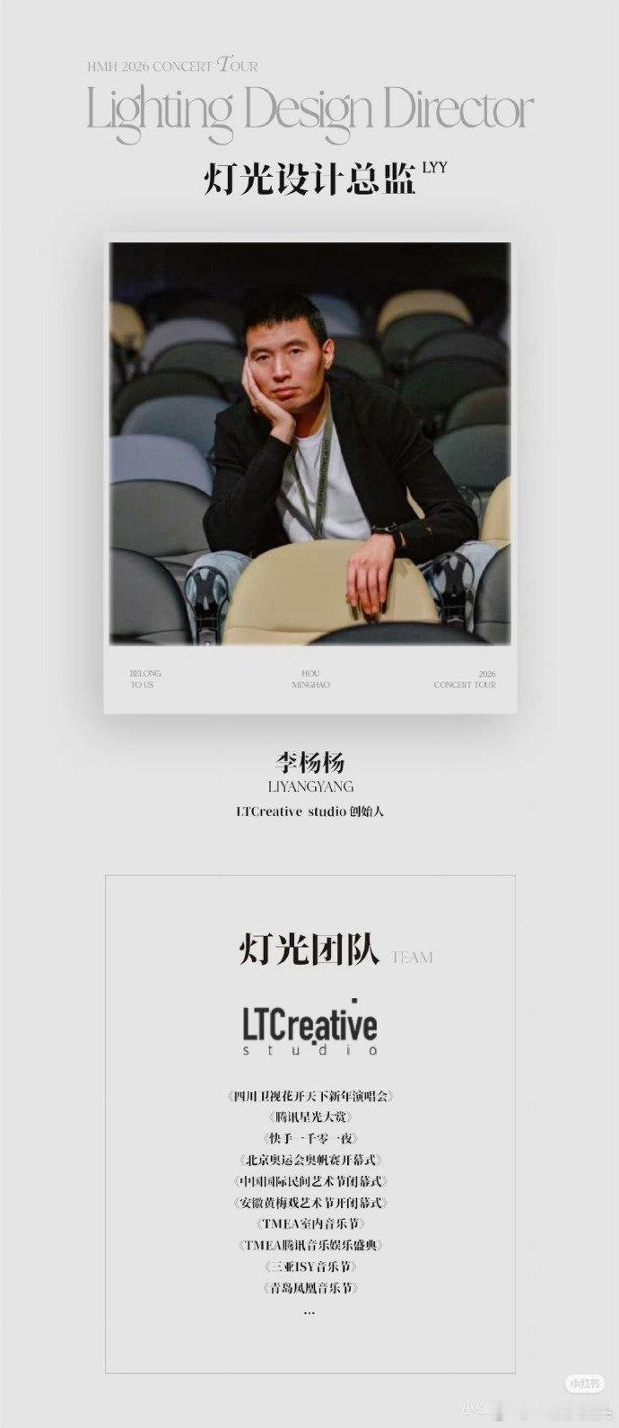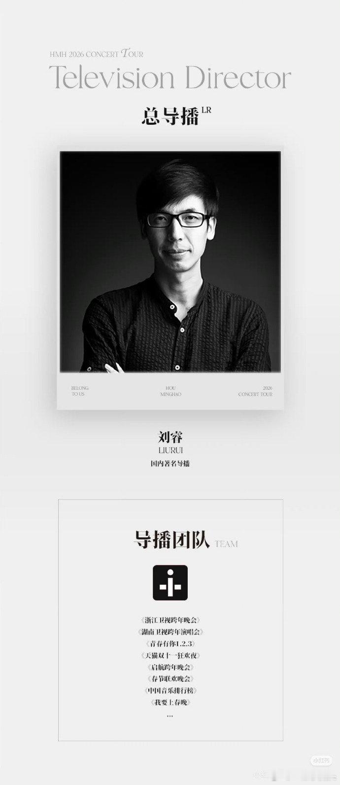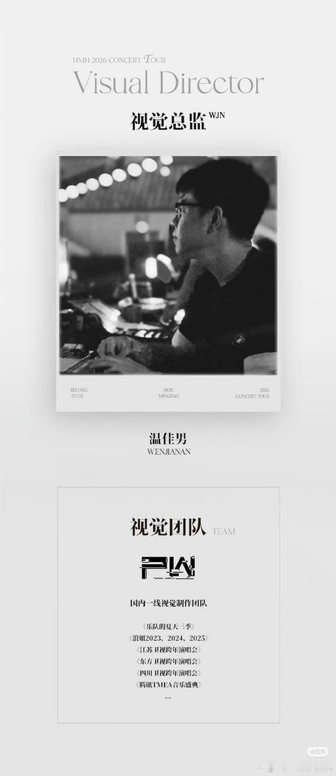 侯明昊2026演唱会主创阵容,总监制居然是侯明昊自己,小侯好牛啊👏 其它人员也