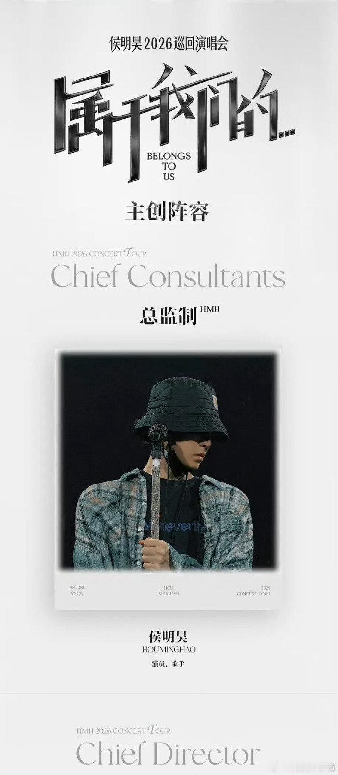 侯明昊2026演唱会主创阵容,总监制居然是侯明昊自己,小侯好牛啊👏 其它人员也全都是行业大夯,真的很期待了5月16号这场视觉盛宴了!