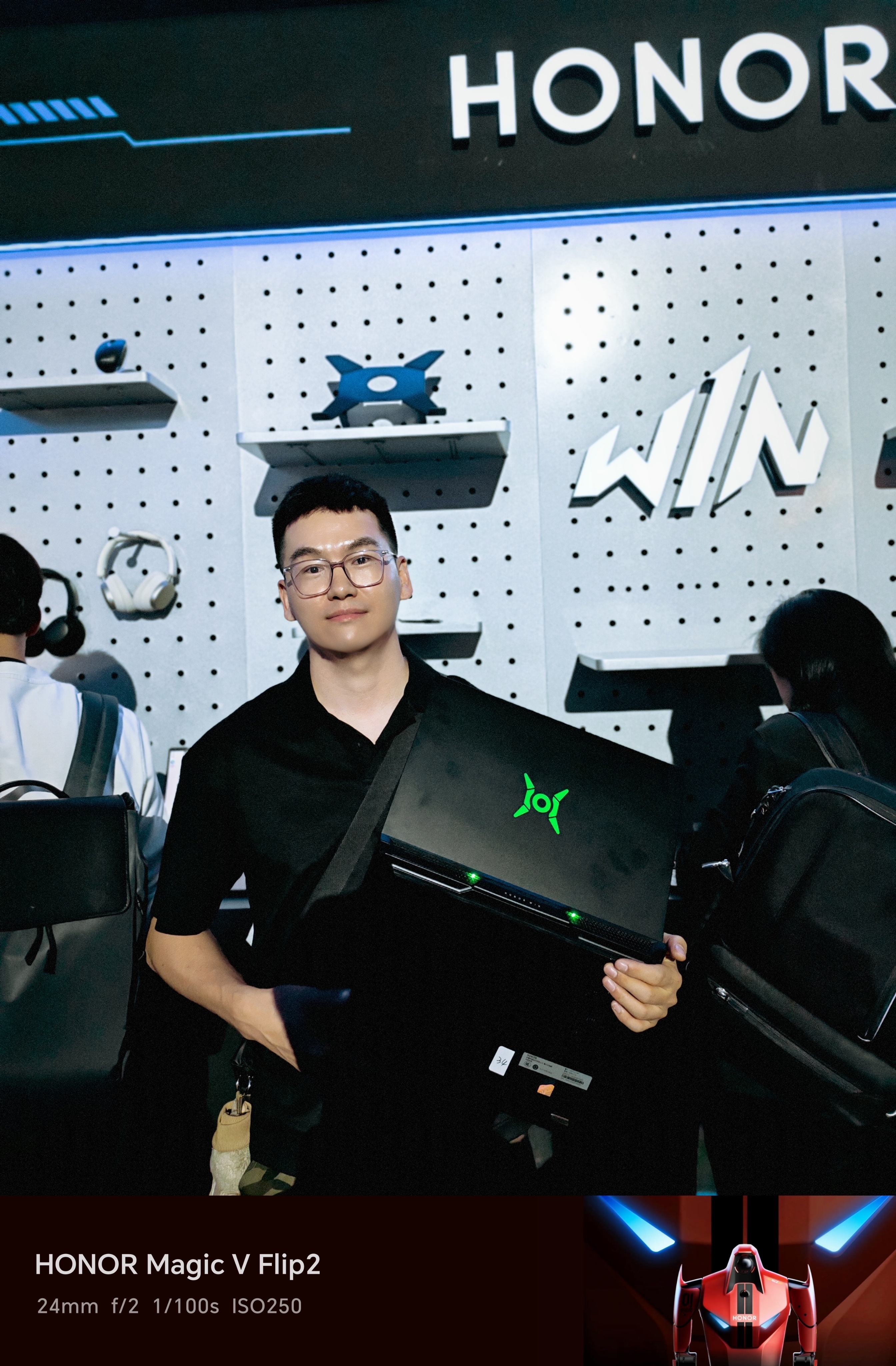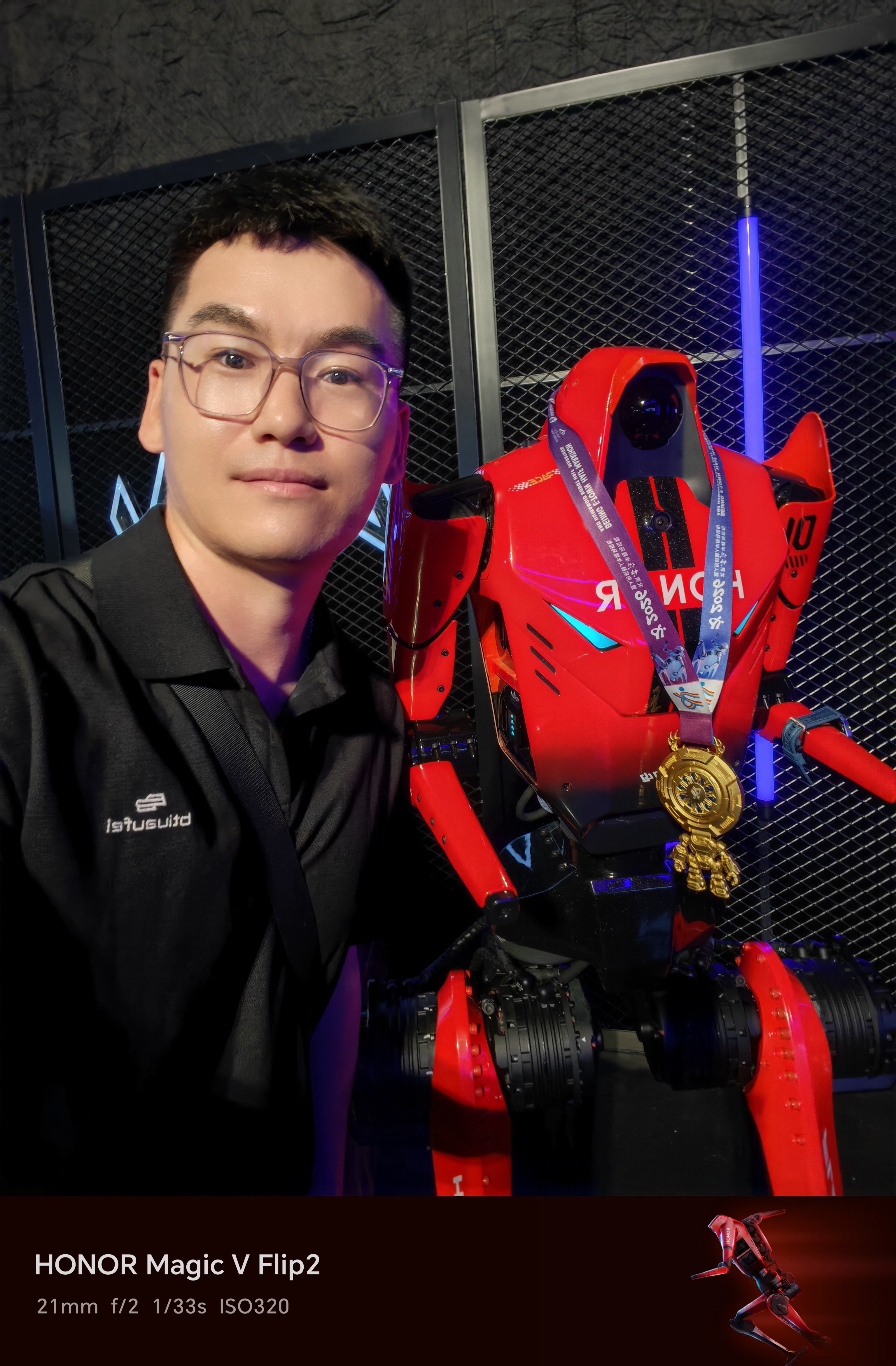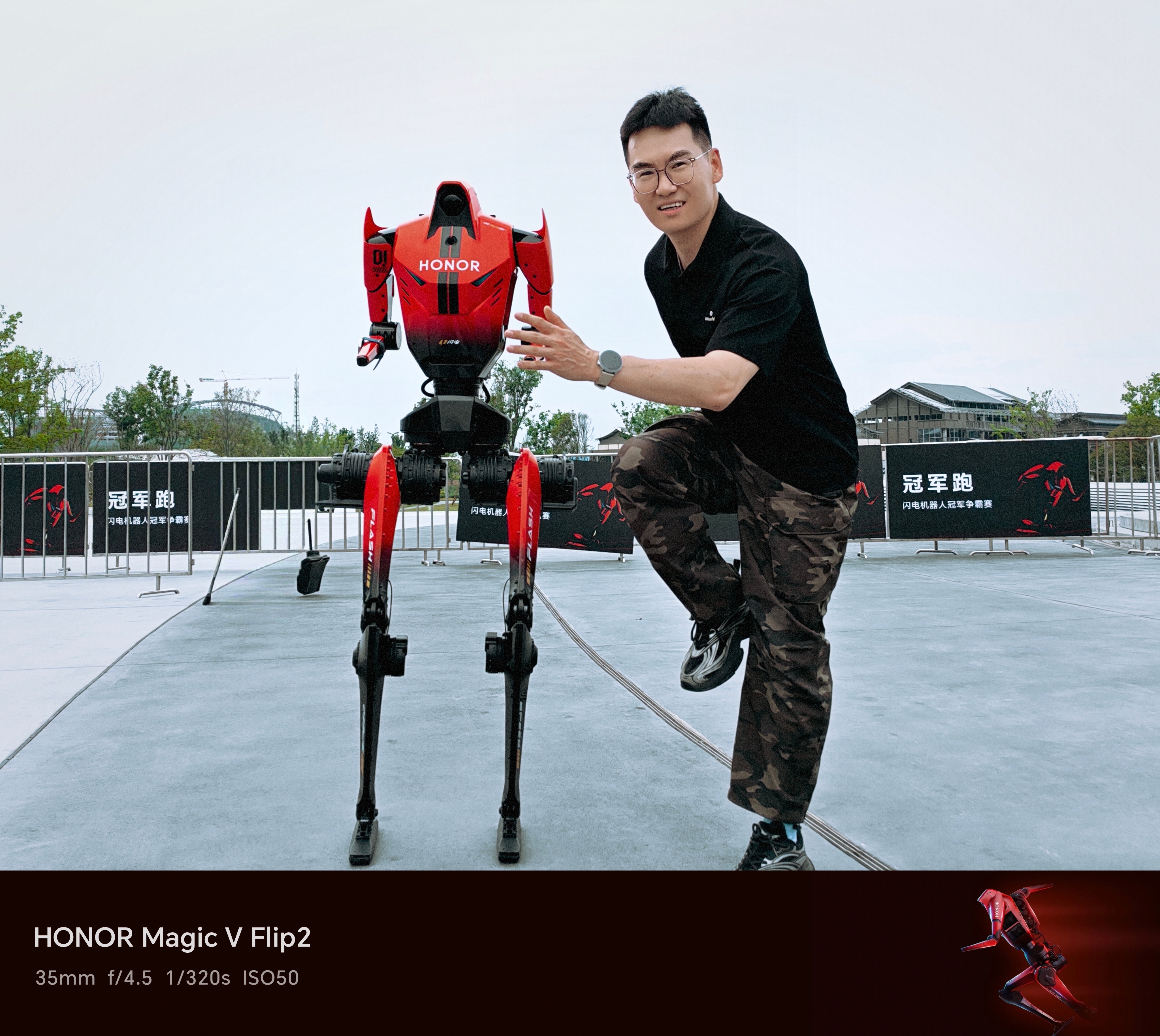 一百米的直线跑,我跑赢了荣耀闪电(机器人起步慢,20米后达到峰速,它不会衰减,如果跑150米我没可能赢)今天,在成都见证了荣耀WIN游戏本的重磅发布,还和刚打破人类半马纪录的闪电机器人赛跑,合影。中国荣耀!荣耀闪电⚡ 成都·成都科幻馆