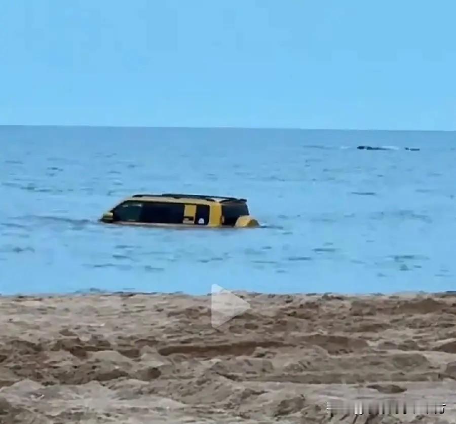 短短十几分钟过去,海水以肉眼可见的速度上涨,从一开始漫过车轮,很快淹到车身、车门,最后直接没过车顶,整辆越野车彻底沉入海水中,变成了泡水车。