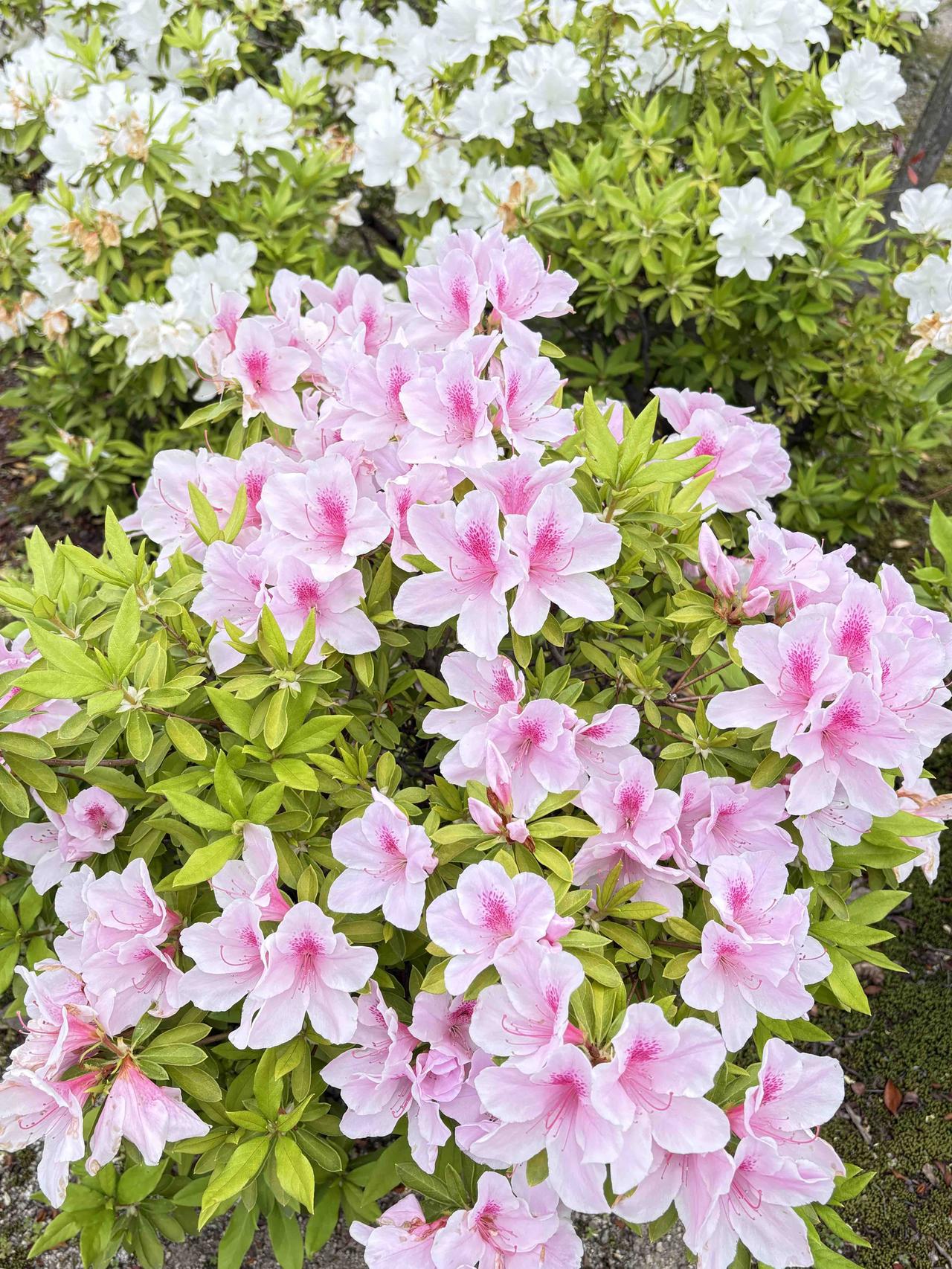 4. 杜鹃花 ,粉色的杜鹃花。花瓣中心有深色的斑点(花蜜引导纹),这种成簇开放的样子是春天亮丽的风景。