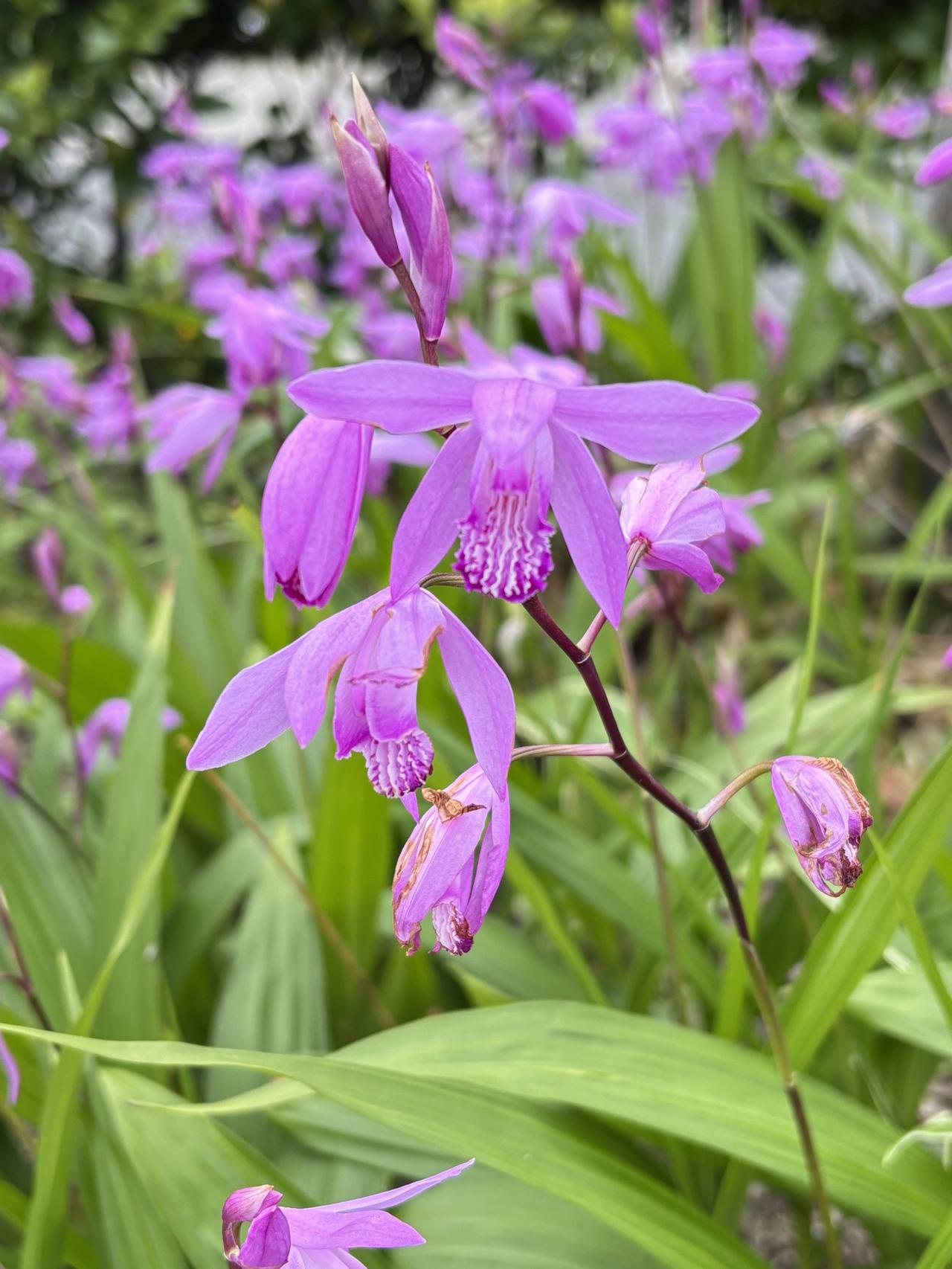 3. 白及 ,紫红色的白及是一种地生兰花。花瓣带有明显的褶皱,通常春季盛开,既是观赏植物也是一种中药材。