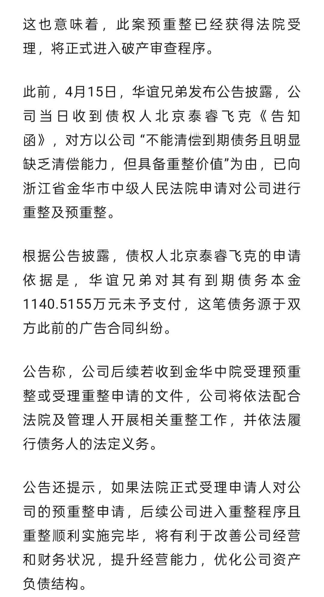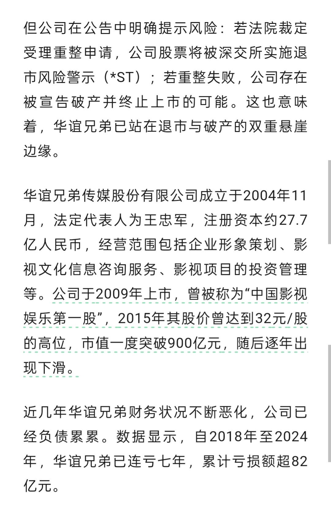 华谊兄弟被申请破产。巅峰期市值900亿,目前市值只剩54亿。