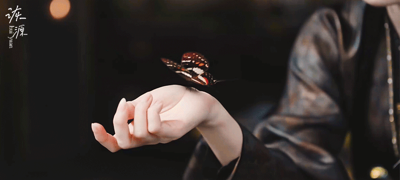 迪丽热巴 《白日提灯》贺思慕 / 动图▷EP34-08 猫猫头+黑衣-手托脸看蝴