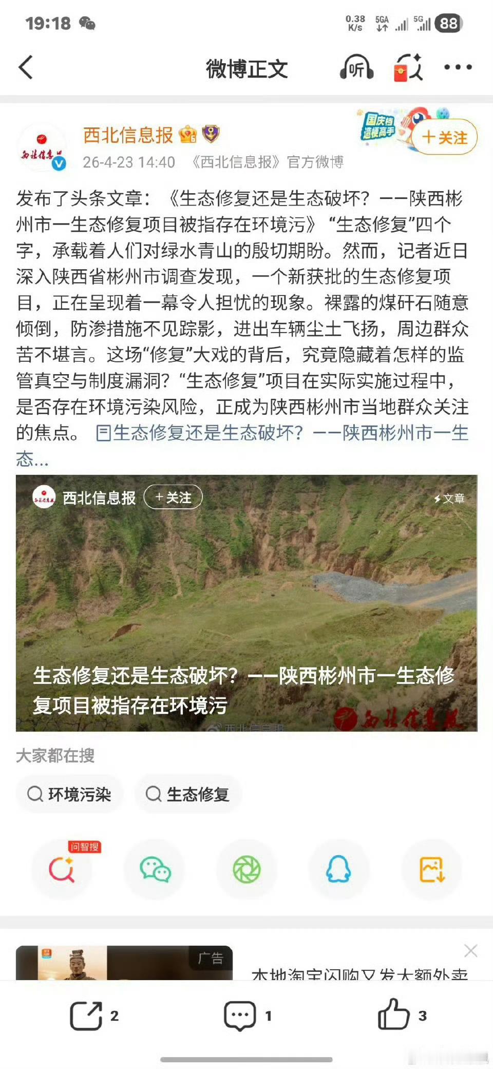 【生态修复还是生态破坏?——陕西咸阳彬州市一生态修复项目被指存在环境污】