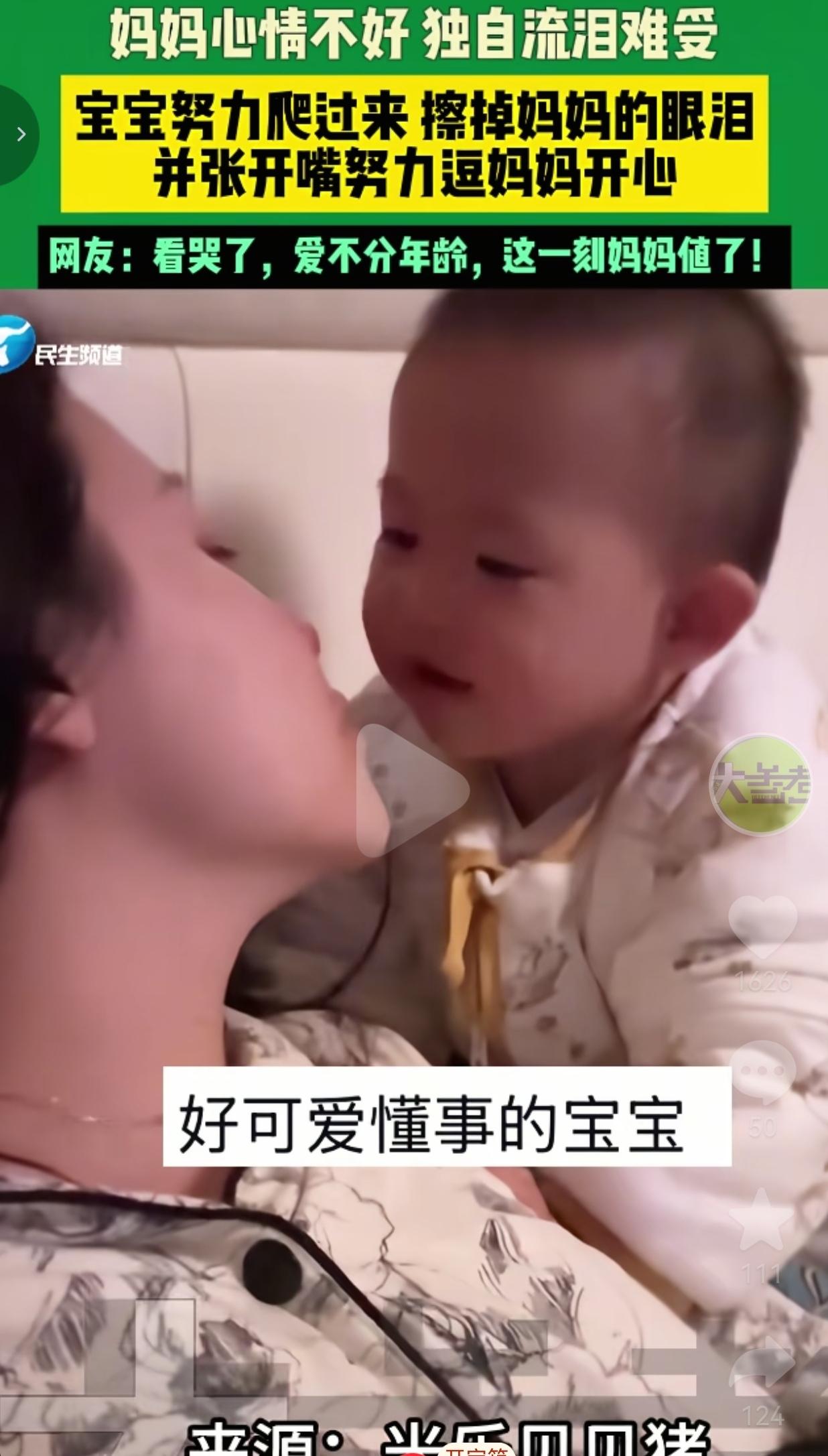 小家伙蹬着小短腿,费劲地穿过被子,一点点朝着妈妈的方向爬过来,动作笨拙又急切。爬到跟前之后,肉乎乎的小手,一下又一下,轻轻擦拭妈妈脸上的泪水。