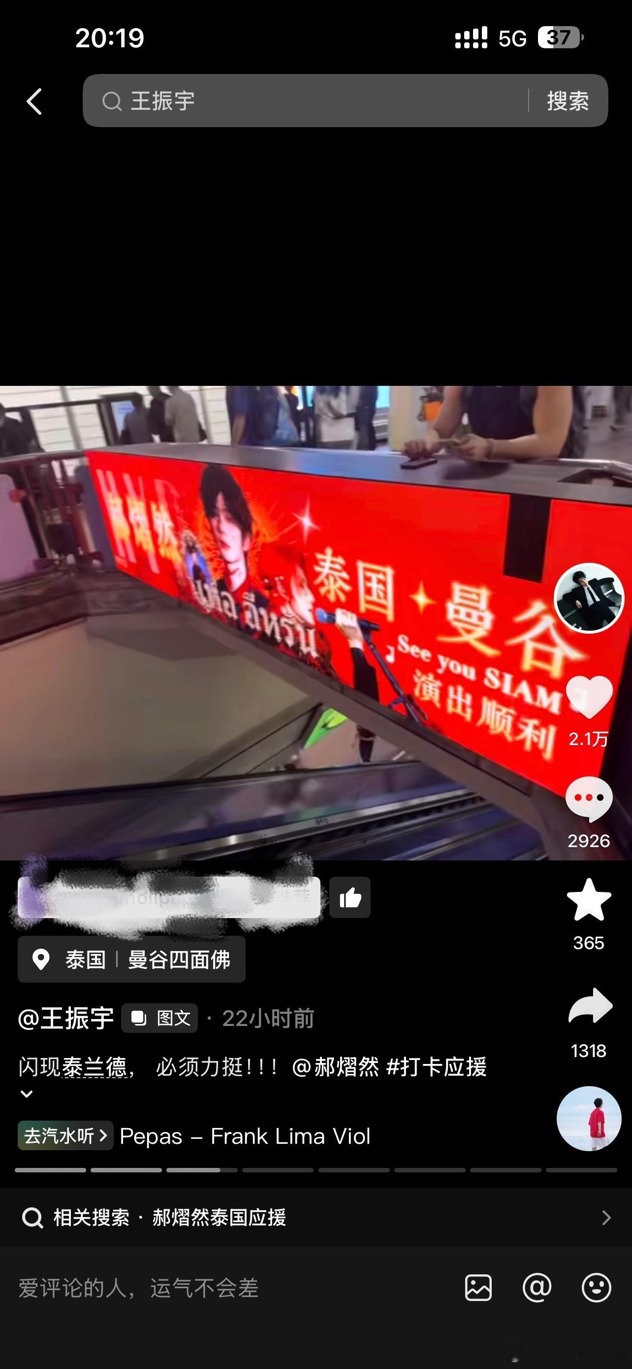啊啊啊,我居然在郝熠然朋友抖音里看到他去打卡咱们的大屏了!激动💗他说他有把拍到的给郝熠然看,那么!郝熠然看到我们护熠队的应援了????