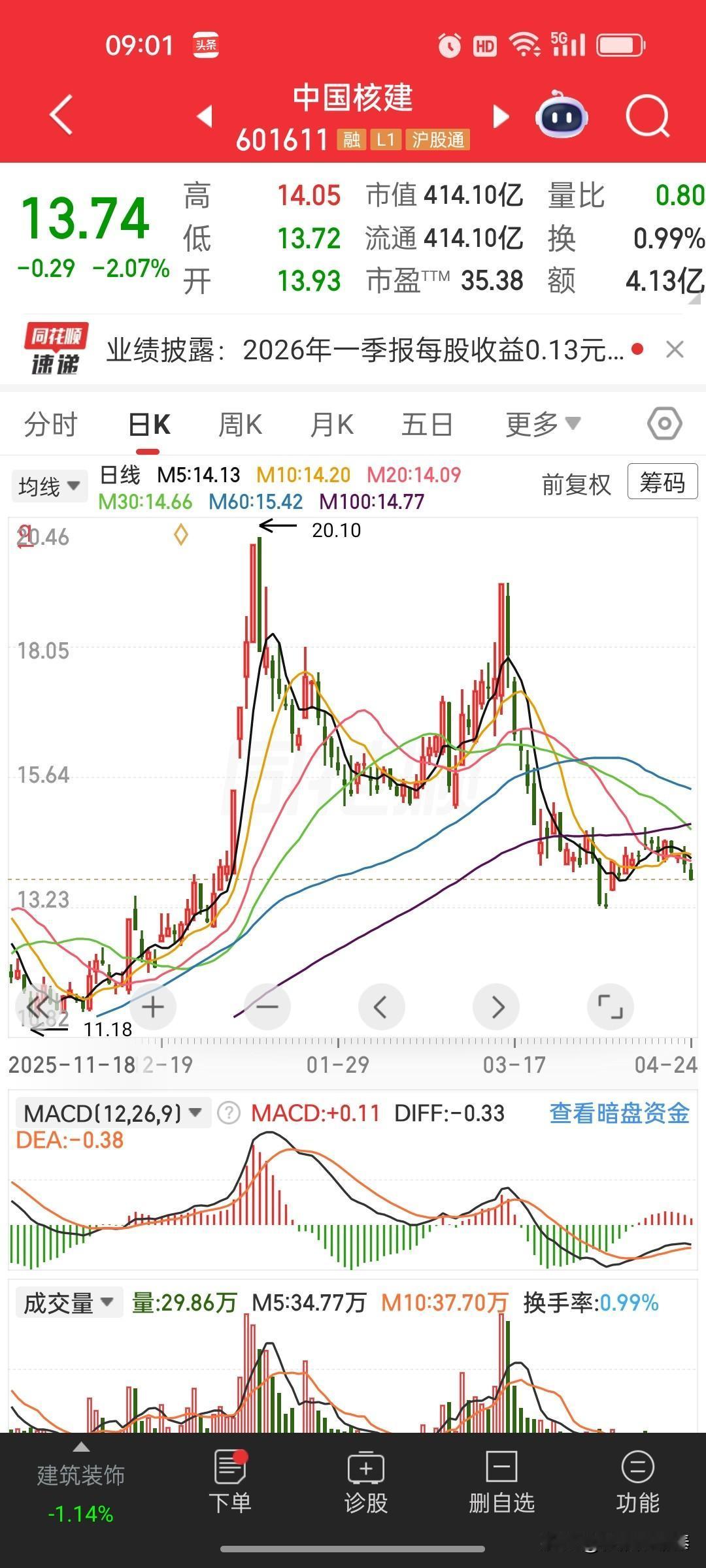 中国核建2026年一季报出炉,归母净利润4.03亿元,同比下滑26.93%,至此已连续四个季度净利润同比负增长,引发市场对这家核电工程龙头的关注。