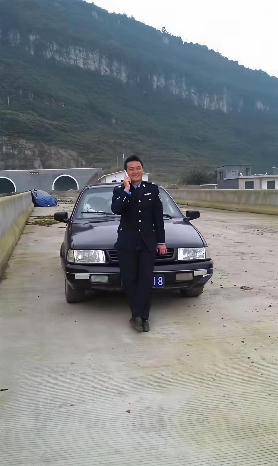 戴着“总警监”警衔,这是什么操作,到底是拍电视剧还是自己随便买来戴着玩的,从图中的汽车和手机可以看出,这个照片应该时间比较久了,可能是快二十年前拍的了,那时候还没智能手机。