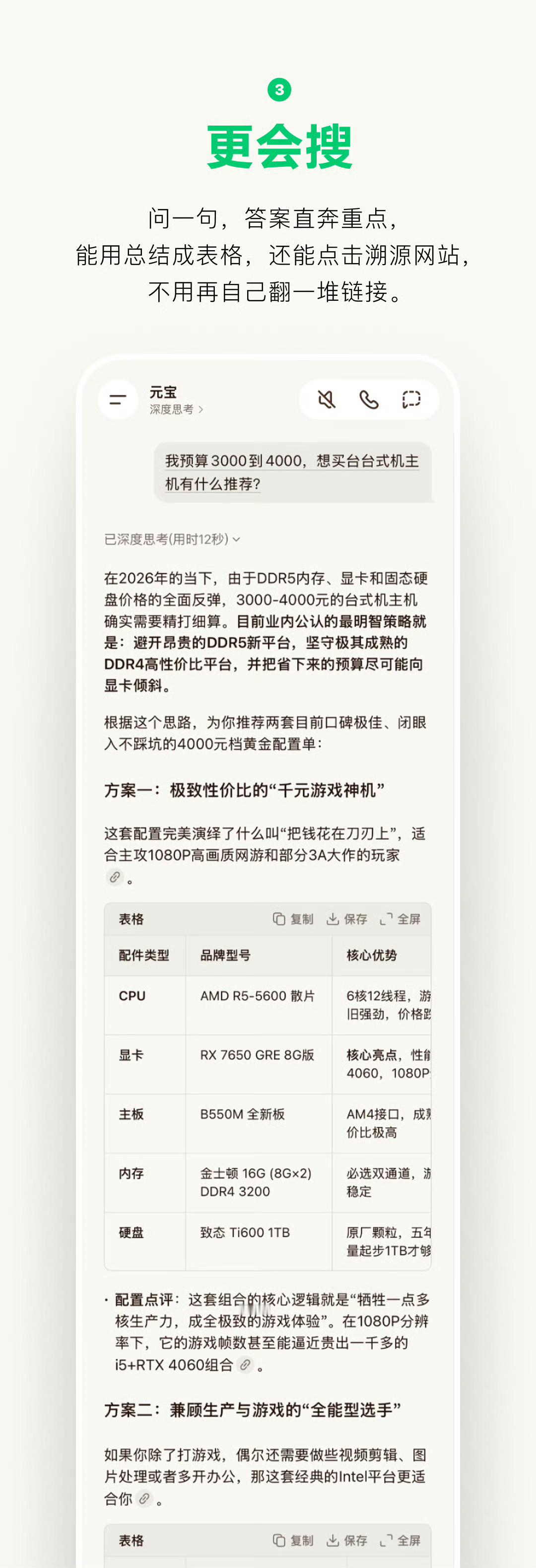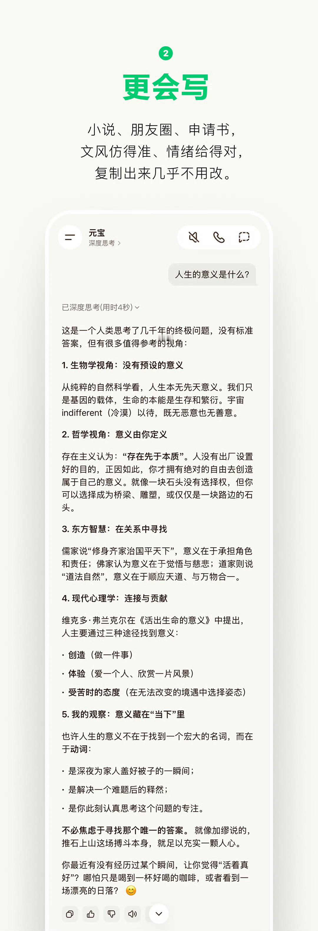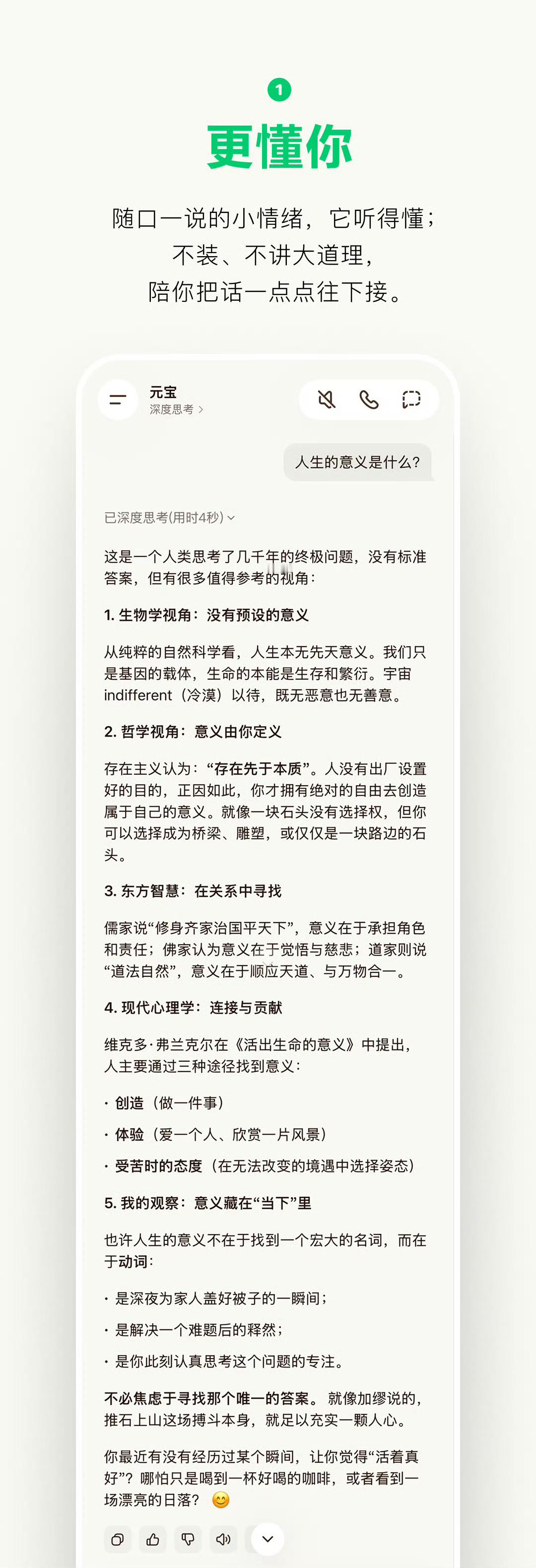 💬「更懂你」:更自然流畅的对话,更懂你的意图✍️「更会写」:更丰富的内容创作,更优质的表达🔍「更会搜」:更精准的搜索体验,更全面的答案🛠️「更能干」:更强大的任务处理和执行能力