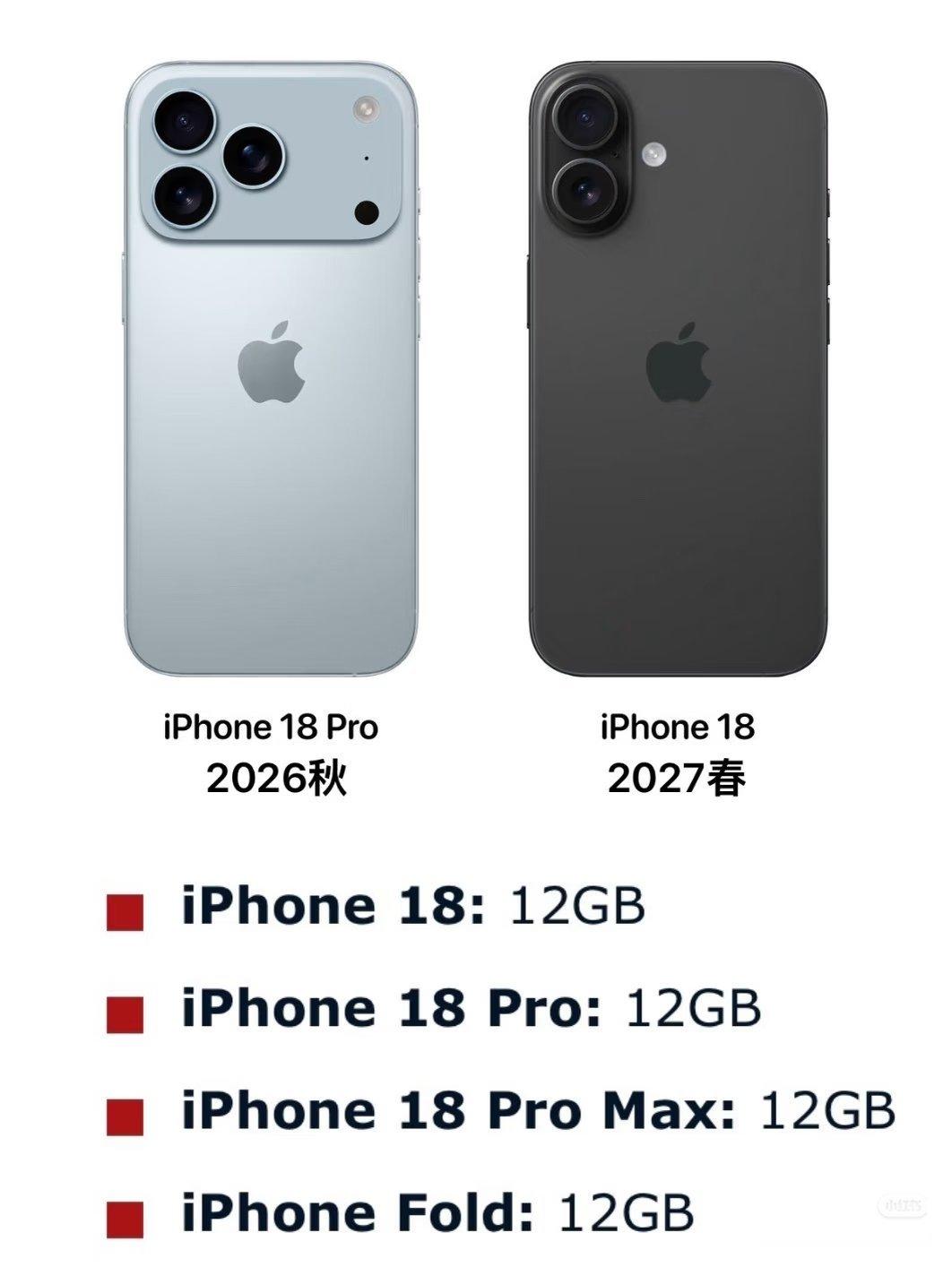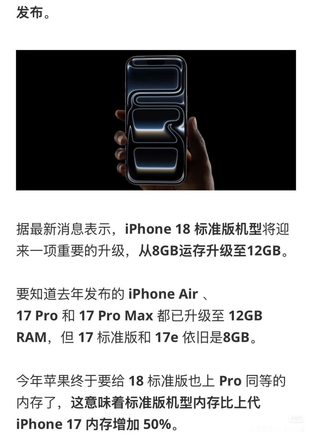 曝iPhone18配12GB内存内存直升12GB,苹果不再偏心!好好好,买买买