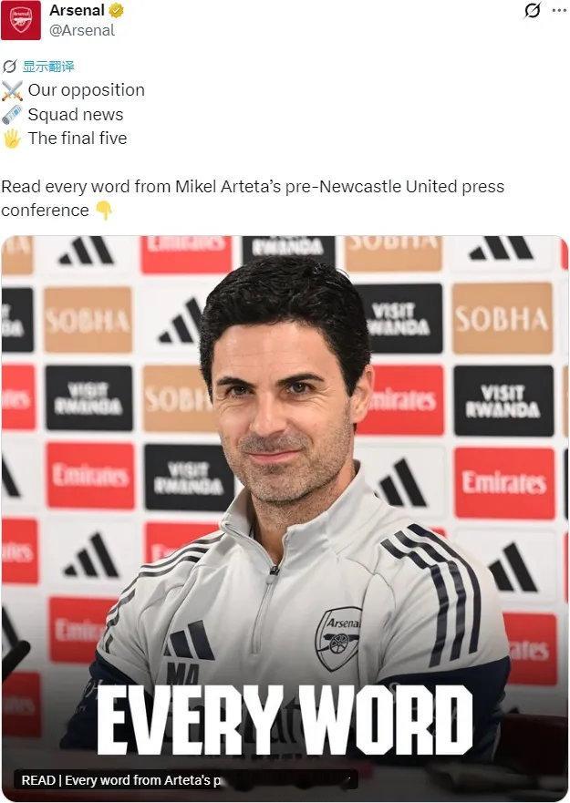 阿尔特塔出席了赛前新闻发布会,我们来看看阿森纳主帅谈到了哪些重要的内容。