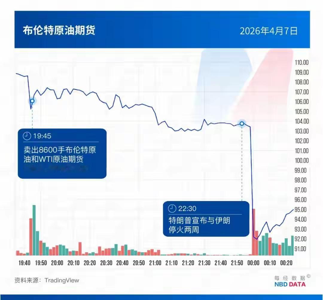 3月23日,特朗普宣布美伊对话前15分钟,5.8亿美元原油空单突然砸盘;4月17日霍尔木兹海峡开放前20分钟,7.6亿美元卖单精准入场;4月23日停火延长前15分钟,4.3亿美元空单再次“踩点”成功 !这哪是市场预判,分明是拿着机密当筹码!
