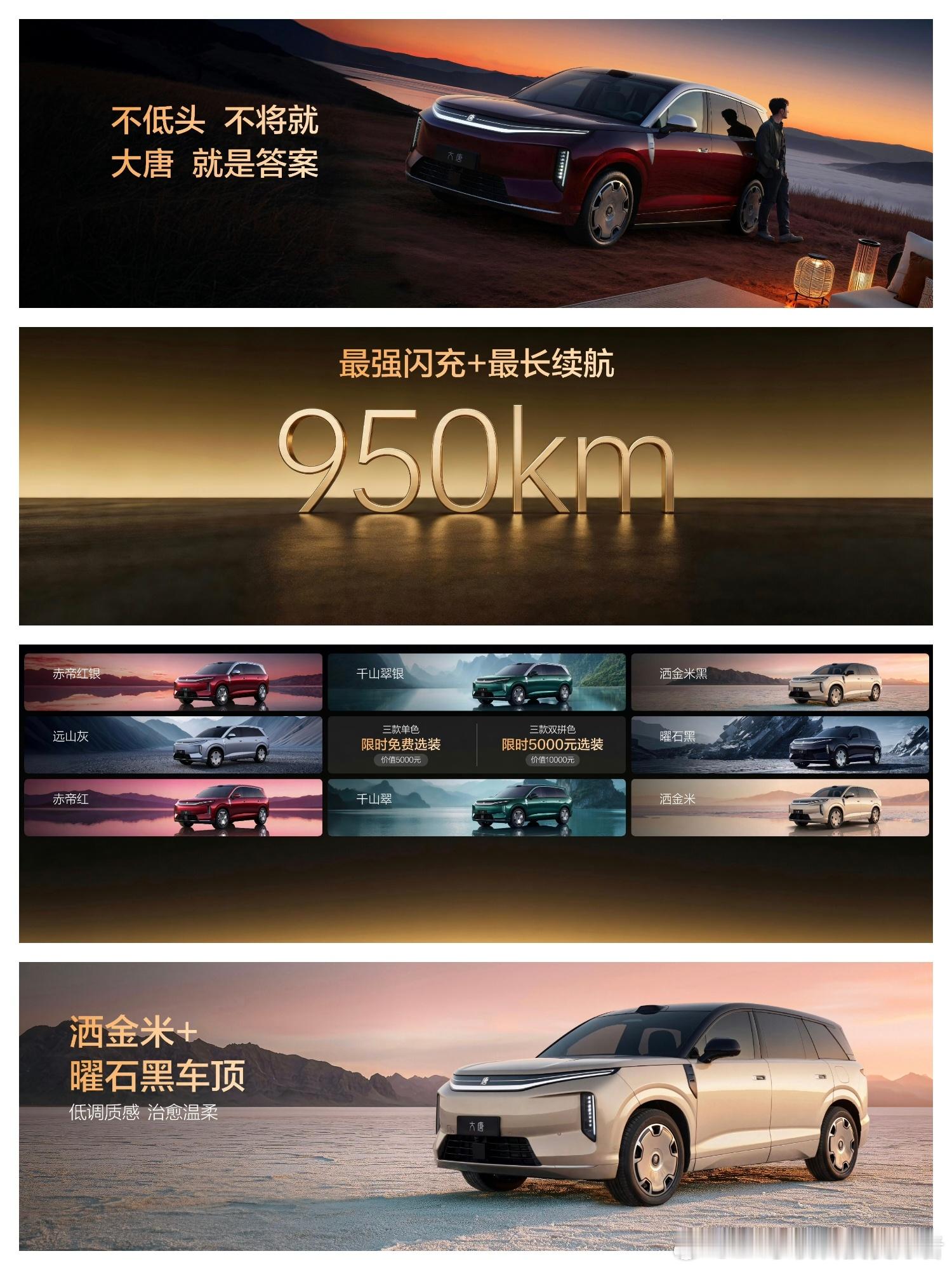 一台纯电全尺寸SUV,950km的长续航是真的有吸引力,这个后驱版本估计会很走量。还有一个闪充,其它不考虑就这两个配置就稳了。