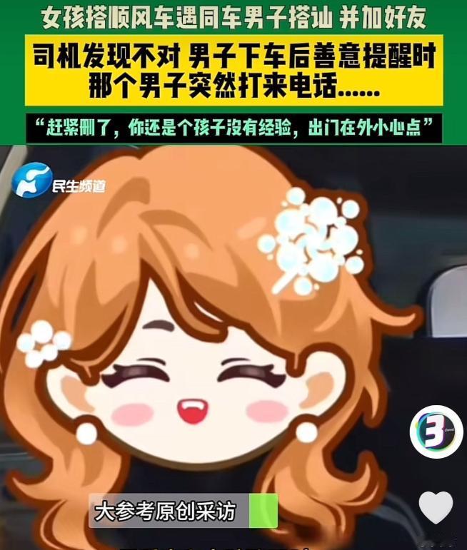 顺风车为什么容易被盯上?场景自然、氛围轻松,信息交换快,距离又近,搭讪成本低,目标清晰。对方披着交朋友的外衣,内心算盘哗啦响,年轻女孩就成了优先目标。