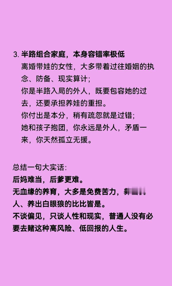 1. 经济负担重:长大以后要房车以及成家彩礼,开支巨大,婚后共同财产极易向继子倾斜。