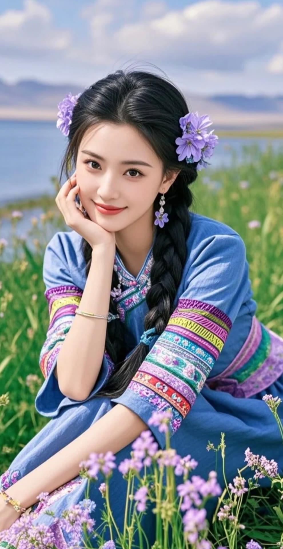 阳光明媚的午后,花海中的少女,笑靥如花。🌸🌞