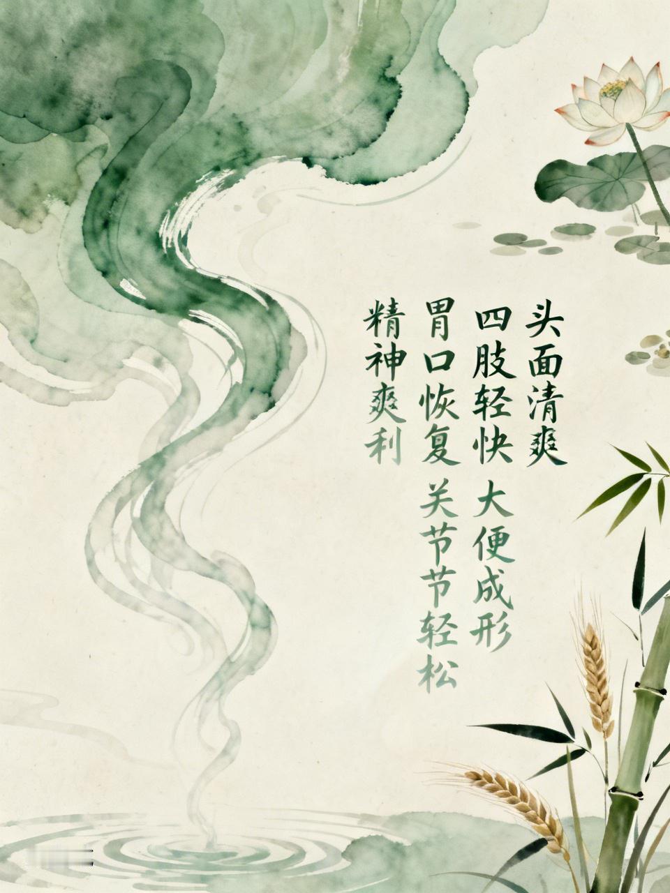 无湿一身轻。舌苔干净了,腿脚轻快了,大便成形了,肚子不胀了,关节不疼了,妇科清爽了,精神头旺了。身体从“回南天”变成“秋高气爽”,这就是中医最看重的“清阳上升、浊阴下降”的健康状态。