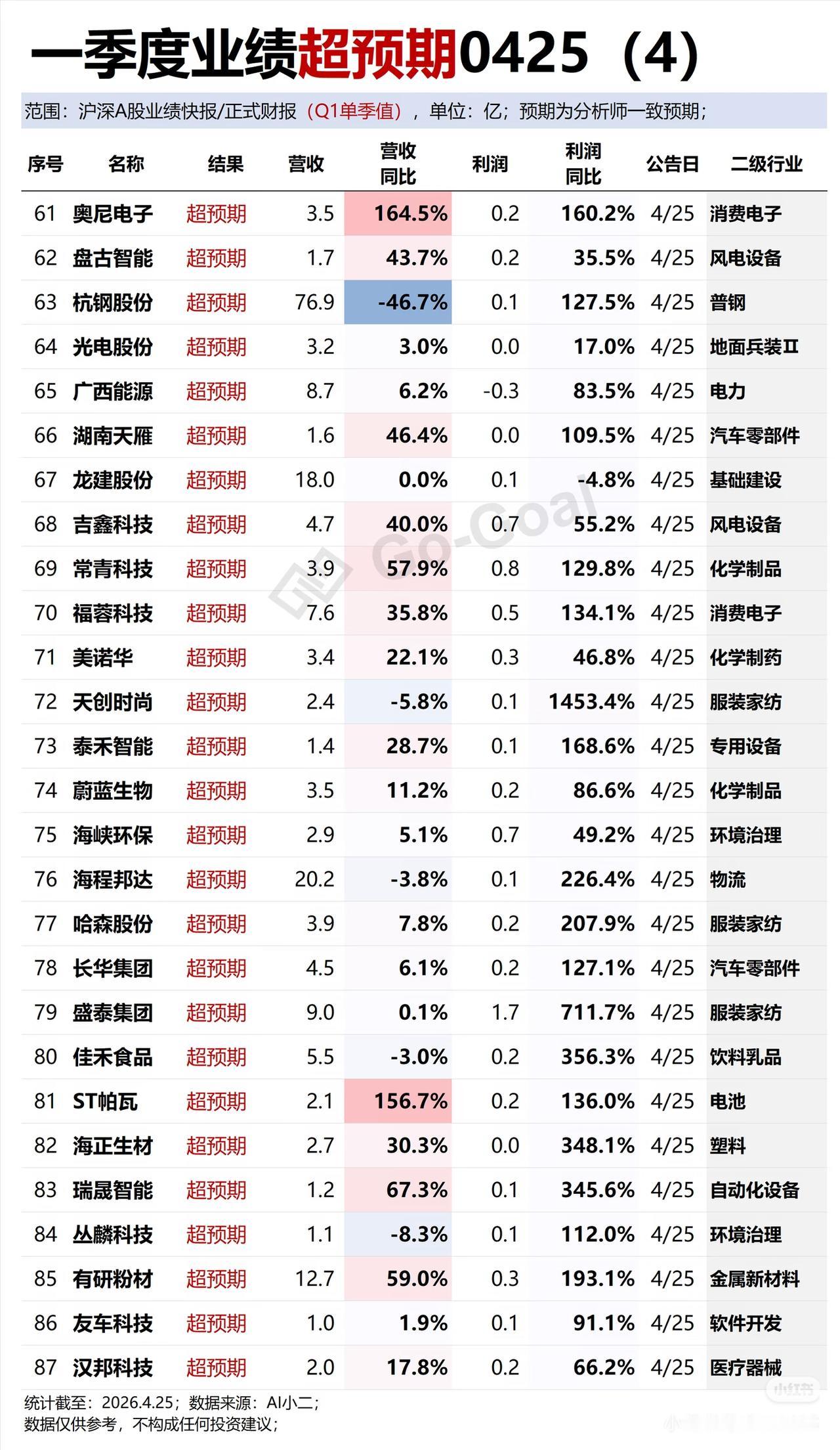 一季报披露完毕,这份业绩超预期的个股清单,直接给大家整理好了!